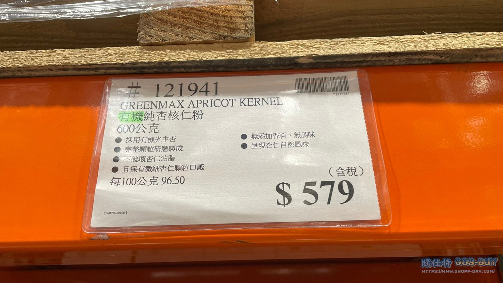 家食品麵包類即溶現泡類 GREENMAX APRICOT KERNEL 有機純杏仁粉 600公克 #121941 By 網站小編 2022 年 2 月 16 日 165 產品資訊 產品資訊 產品名稱GREENMAX APRICOT KERNEL 有機純杏仁粉 600公克 #121941價格579產地中國包裝規格600公克保存期限一年備註採用有機光中杏完整顆粒研磨製成不破壞杏仁油脂且保有微細杏仁顆粒口感無添加香料 無調味呈現杏仁自然風味 →商品問題回報← 相關 標籤有機杏仁粉烘焙馬玉山 前一篇文章AHNOKNAM韓國昆布鯷魚高湯包 #519994下一篇文章MICROTEXNYC DECO PILLOW 燈芯絨質感抱枕二入組 尺寸:50X50公分 #130880 網站小編https://shopp-day.com 或許你也感興趣 價格優惠資訊 2025好市多客製生日蛋糕價格表 價格優惠資訊 好市多Line社群加入方法 保健品&藥品 新甘木堅胃腸藥顆粒40包 #194496 購仕特-CosBuy 查詢排行 價格優惠資訊 2025好市多客製生日蛋糕價格表 價格優惠資訊 好市多Line社群加入方法 保健品&藥品 新甘木堅胃腸藥顆粒40包 #194496 價格優惠資訊 2025好市多會員護照-春季專案商品一覽表 價格優惠資訊 好市多美國牛肉整箱銷售價格表(2024/5/7) 裝載更多 熱門推薦 價格優惠資訊 2025好市多客製生日蛋糕價格表 價格優惠資訊 好市多美國牛肉整箱銷售價格表(2024/5/7) 價格優惠資訊 好市多日本和牛價格表 2024.4.29更新 冷藏食品 美國特選無骨牛小排火鍋片#25737 冷藏食品 舊振南英式馬芬米福堡#143387 裝載更多