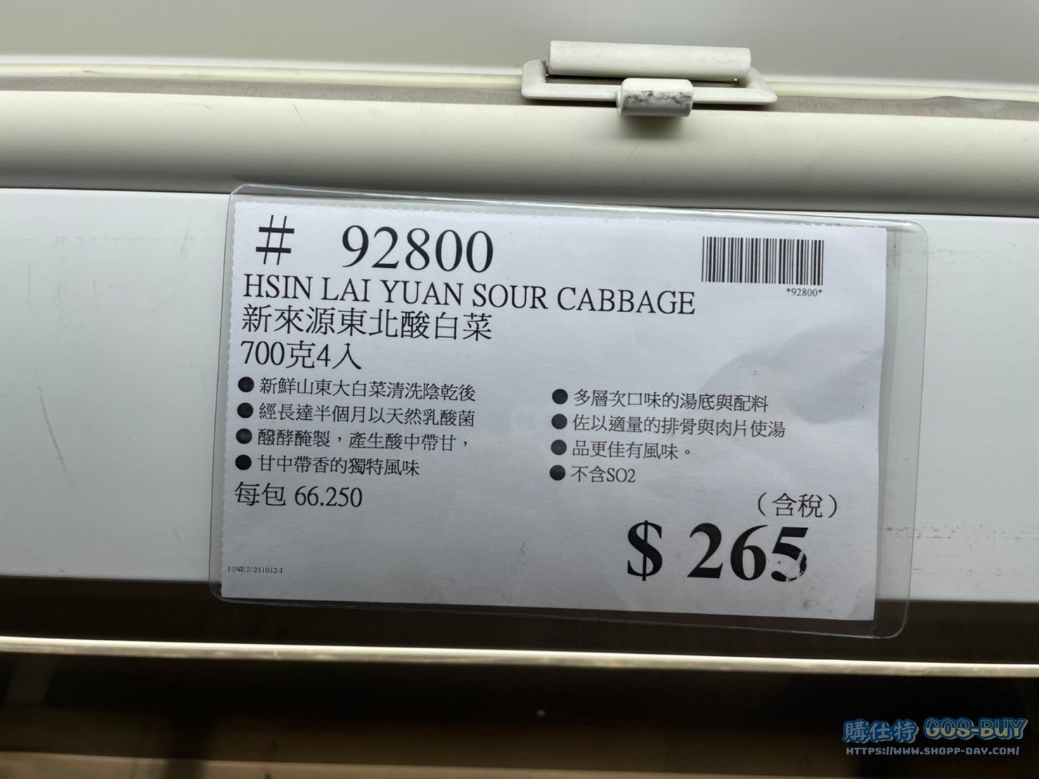 家食品麵包類冷藏食品 HSIN LAI YUAN SOUR CABBAGE 新來源東北酸白菜 700克4入 #92800 By 網站小編 2022 年 2 月 25 日 228 產品資訊 產品資訊 產品名稱HSIN LAI YUAN SOUR CABBAGE 新來源東北酸白菜 700克4入 #92800價格265產地台灣包裝規格700克X4入保存期限一年備註新鮮山東大白菜清洗陰乾後經長達半個月以天然乳酸菌醱酵醃製 產生酸中帶甘甘中帶香的獨特風味多層次口味的湯底與配料佐以適量的排骨與肉片使湯品更加有風味 不含SO2→商品問題回報← 相關 標籤大白菜酸白菜 前一篇文章KOREAN SIDE DISH COMBO 韓國小菜組 #133988下一篇文章RITTER SPORT CUBE CHOCO 力特彩色方塊含餡巧克力608公克 #131468 網站小編https://shopp-day.com 或許你也感興趣 價格優惠資訊 2025好市多客製生日蛋糕價格表 價格優惠資訊 好市多Line社群加入方法 保健品&藥品 新甘木堅胃腸藥顆粒40包 #194496 購仕特-CosBuy 查詢排行 價格優惠資訊 2025好市多客製生日蛋糕價格表 價格優惠資訊 好市多Line社群加入方法 保健品&藥品 新甘木堅胃腸藥顆粒40包 #194496 價格優惠資訊 2025好市多會員護照-春季專案商品一覽表 價格優惠資訊 好市多美國牛肉整箱銷售價格表(2024/5/7) 裝載更多 熱門推薦 價格優惠資訊 2025好市多客製生日蛋糕價格表 價格優惠資訊 好市多美國牛肉整箱銷售價格表(2024/5/7) 價格優惠資訊 好市多日本和牛價格表 2024.4.29更新 冷藏食品 美國特選無骨牛小排火鍋片#25737 冷藏食品 舊振南英式馬芬米福堡#143387 裝載更多