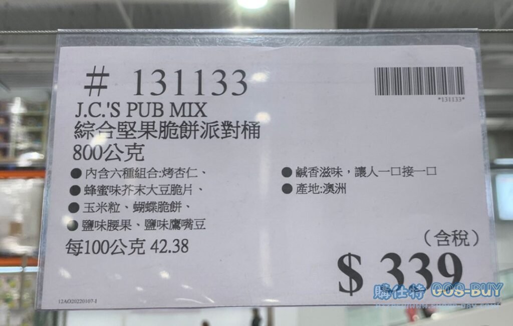 J.C.’S PUB MIX 綜合堅果脆餅派對桶 800公克 #131133