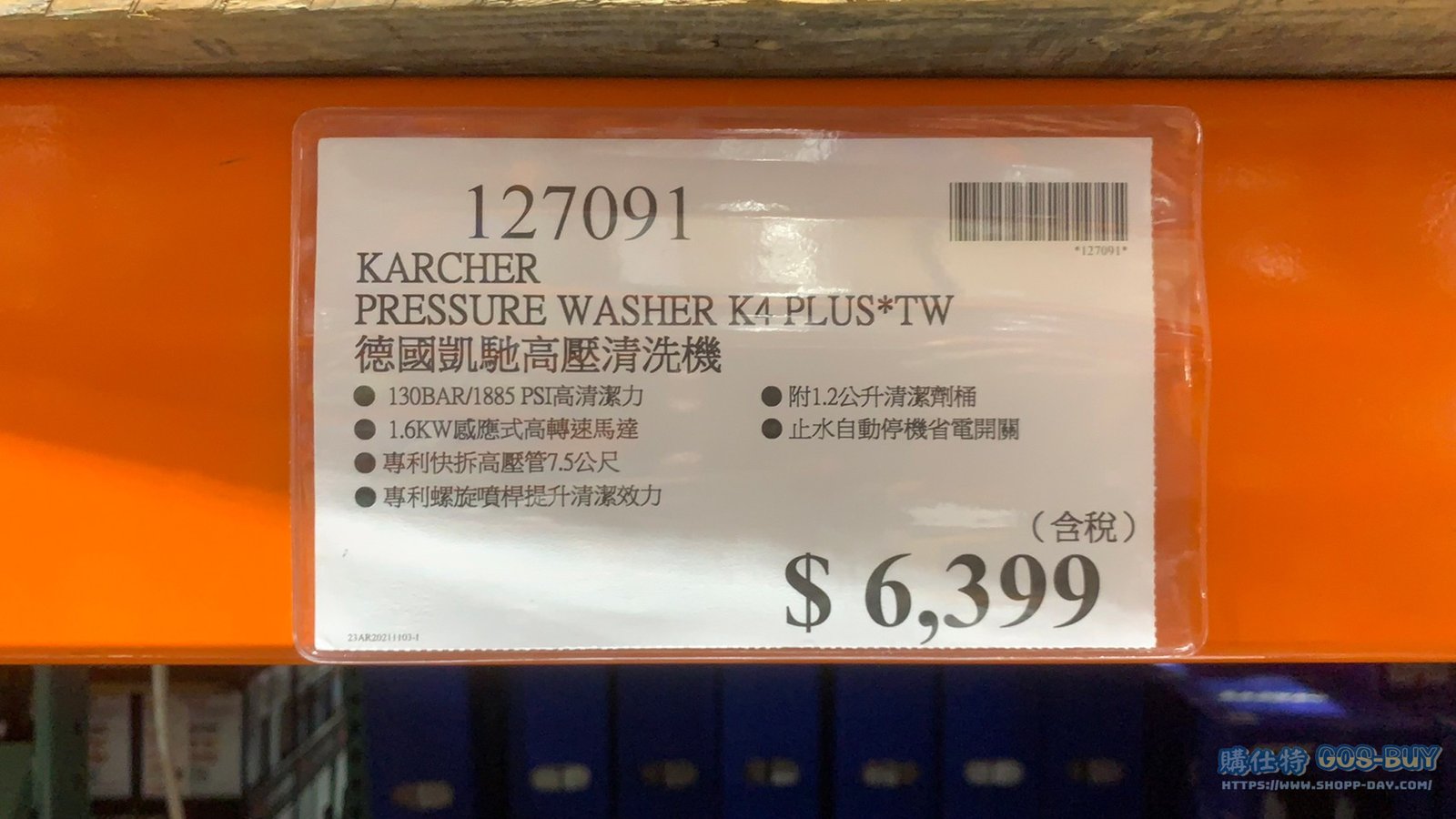 家家電產品其他家電用品 KARCHER PRESSURE WASHER K4 PLUS*TW 德國凱馳高壓清洗機 #127091 By 網站小編 2022 年 1 月 30 日 455 產品資訊 產品資訊 產品名稱KARCHER PRESSURE WASHER K4 PLUS*TW 德國凱馳高壓清洗機 #127091價格6399產地德國包裝規格一組保存期限N/A備註130BAR/1885 PSI高清潔力1.6KW感應式高速旋轉馬達專利快拆高壓管7.5公尺專利螺旋噴桿提升清潔力附1.2公升清潔劑桶止水自動停機省電開關 →商品問題回報← 相關 標籤凱馳清洗機高壓清洗機 前一篇文章WELLS LAMONT GLOVES 乳膠工作手套十雙入 SIZE:XS/S/M #1600320下一篇文章SUNFORCE LED SOLAR MOTION LIGHT LED戶外太陽能感應燈 #1600329 網站小編https://shopp-day.com 或許你也感興趣 價格優惠資訊 2025好市多客製生日蛋糕價格表 價格優惠資訊 好市多Line社群加入方法 保健品&藥品 新甘木堅胃腸藥顆粒40包 #194496 購仕特-CosBuy 查詢排行 價格優惠資訊 2025好市多客製生日蛋糕價格表 價格優惠資訊 好市多Line社群加入方法 保健品&藥品 新甘木堅胃腸藥顆粒40包 #194496 價格優惠資訊 2025好市多會員護照-春季專案商品一覽表 價格優惠資訊 好市多美國牛肉整箱銷售價格表(2024/5/7) 裝載更多 熱門推薦 咖啡機 DOLCE GUSTO GENIO S+ COMBO 雀巢義式膠囊咖啡機 含128顆咖啡膠囊 #128877 冰箱 SHARP夏普變頻雙門冰箱253公升 SJ-H25Y-WH #137098 咖啡機 PHILIPS ESPRESSO MACHINE全自動義式咖啡機 #130890 其他家電用品 TRESANTI FIREPLACE 造型電暖爐 尺寸約193X50X70公分 #124273 冰箱 SAMSUNG 623公升雙循環雙門冰箱#126223 裝載更多