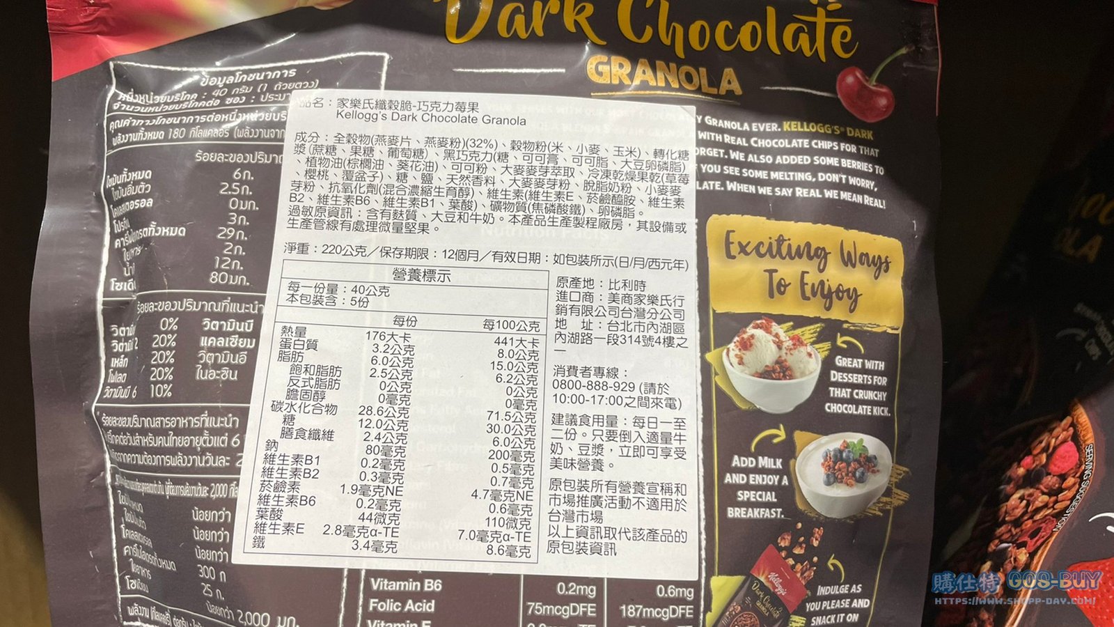 家食品麵包類即溶現泡類 KELLOGG’S 家樂氏巧克力莓果纖榖脆每包220公克 X3包 #131327 By 網站小編 2022 年 3 月 27 日 252 產品資訊 產品資訊 產品名稱KELLOGG’S 家樂氏巧克力莓果纖榖脆每包220公克 X3包 #131327價格349產地比利時包裝規格220公克 X3包保存期限如包裝所示備註酥脆纖榖脆裹上香醇巧克力香濃巧克力混合多種莓果比利時進口榖物脆片高纖 多達6種維生素含膳食纖維2022/7/8查價價格由329漲價為349漲價20元→商品問題回報← 相關 標籤家樂氏巧克力 前一篇文章LEAPFROG ICE CREAM CART 冰淇淋學習車 雙語版 #134435下一篇文章STRIVECTIN 重返青春全能眼霜 #1290515 網站小編https://shopp-day.com 或許你也感興趣 價格優惠資訊 2025好市多客製生日蛋糕價格表 價格優惠資訊 好市多Line社群加入方法 保健品&藥品 新甘木堅胃腸藥顆粒40包 #194496 購仕特-CosBuy 查詢排行 價格優惠資訊 2025好市多客製生日蛋糕價格表 價格優惠資訊 好市多Line社群加入方法 保健品&藥品 新甘木堅胃腸藥顆粒40包 #194496 價格優惠資訊 2025好市多會員護照-春季專案商品一覽表 價格優惠資訊 好市多美國牛肉整箱銷售價格表(2024/5/7) 裝載更多 熱門推薦 價格優惠資訊 2025好市多客製生日蛋糕價格表 價格優惠資訊 好市多美國牛肉整箱銷售價格表(2024/5/7) 價格優惠資訊 好市多日本和牛價格表 2024.4.29更新 冷藏食品 美國特選無骨牛小排火鍋片#25737 冷藏食品 舊振南英式馬芬米福堡#143387 裝載更多