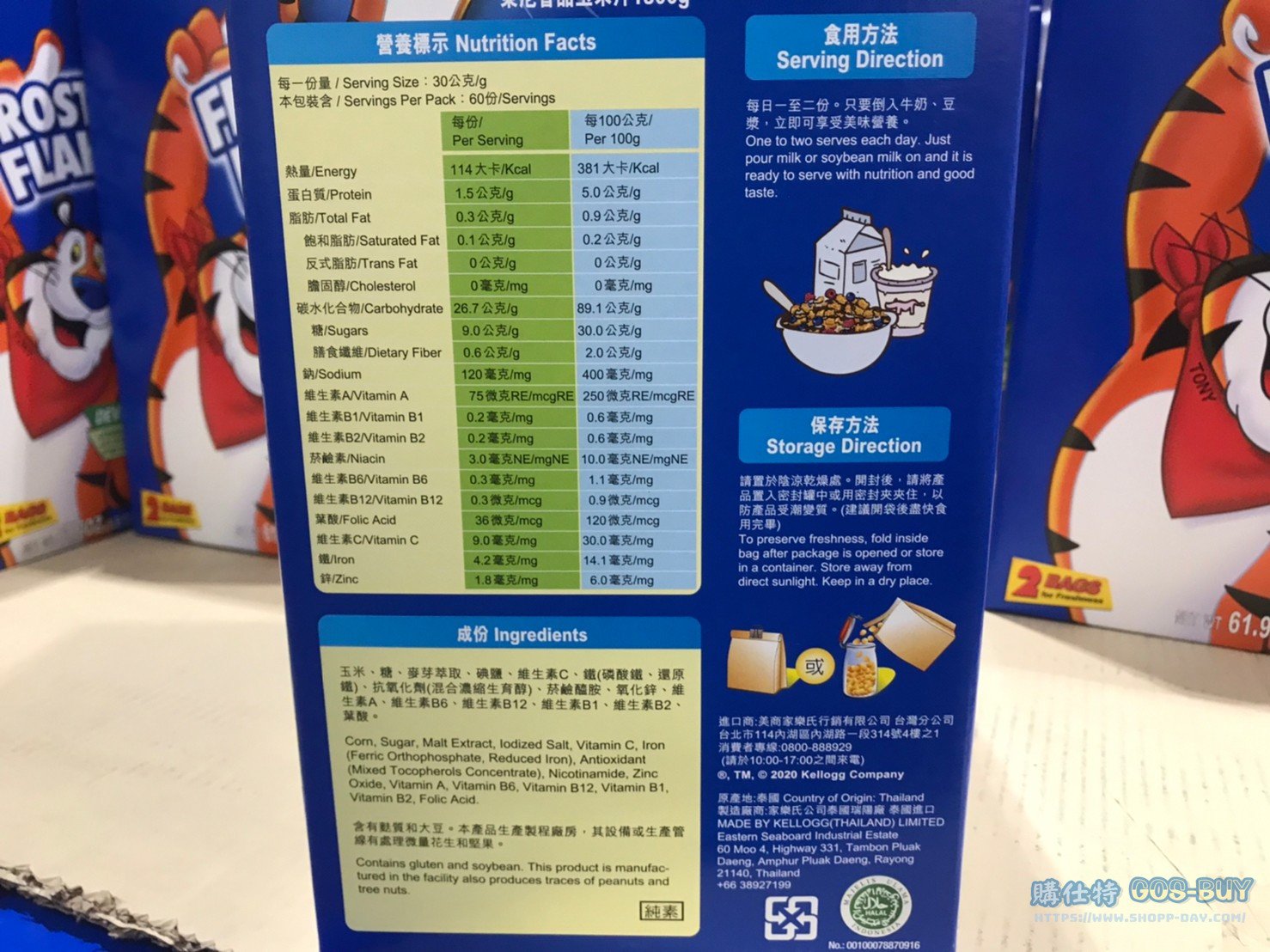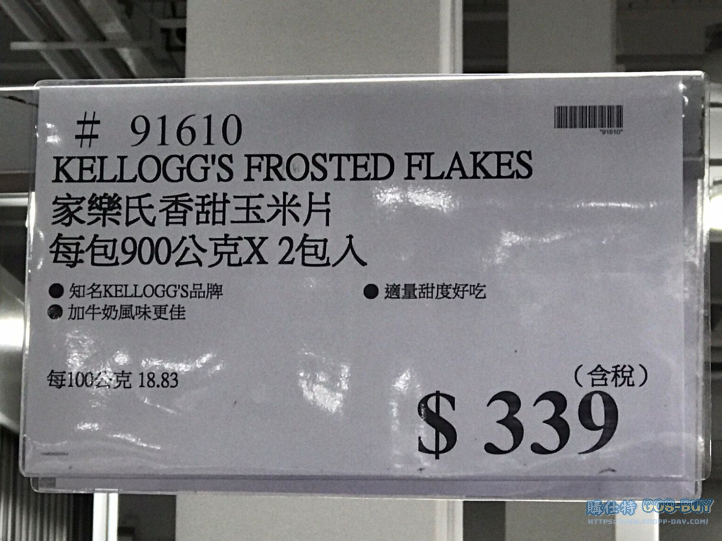 家食品麵包類即溶現泡類 KELLOGG’S家樂氏香甜玉米片 #91610 By 網站小編 2022 年 4 月 21 日 179 產品資訊 產品資訊 產品名稱KELLOGG’S FROSTED FLAKES 家樂氏香甜玉米片 每包900公克 X 2包入 #91610價格339產地泰國包裝規格900公克 X 2入保存期限依包裝所示備註知名KELLOGG’S品牌加牛奶風味更佳適量甜度好吃→商品問題回報← 相關 標籤家樂氏玉米片 前一篇文章KINGMORI DRESSING & SAUCE 日式醬料組合 3瓶/組 #80426下一篇文章卡樂比富果樂水果早餐麥片1公斤 #216971 網站小編https://shopp-day.com 或許你也感興趣 價格優惠資訊 2025好市多客製生日蛋糕價格表 價格優惠資訊 好市多Line社群加入方法 保健品&藥品 新甘木堅胃腸藥顆粒40包 #194496 購仕特-CosBuy 查詢排行 價格優惠資訊 2025好市多客製生日蛋糕價格表 價格優惠資訊 好市多Line社群加入方法 保健品&藥品 新甘木堅胃腸藥顆粒40包 #194496 價格優惠資訊 2025好市多會員護照-春季專案商品一覽表 價格優惠資訊 好市多美國牛肉整箱銷售價格表(2024/5/7) 裝載更多 熱門推薦 價格優惠資訊 2025好市多客製生日蛋糕價格表 價格優惠資訊 好市多美國牛肉整箱銷售價格表(2024/5/7) 價格優惠資訊 好市多日本和牛價格表 2024.4.29更新 冷藏食品 美國特選無骨牛小排火鍋片#25737 冷藏食品 舊振南英式馬芬米福堡#143387 裝載更多