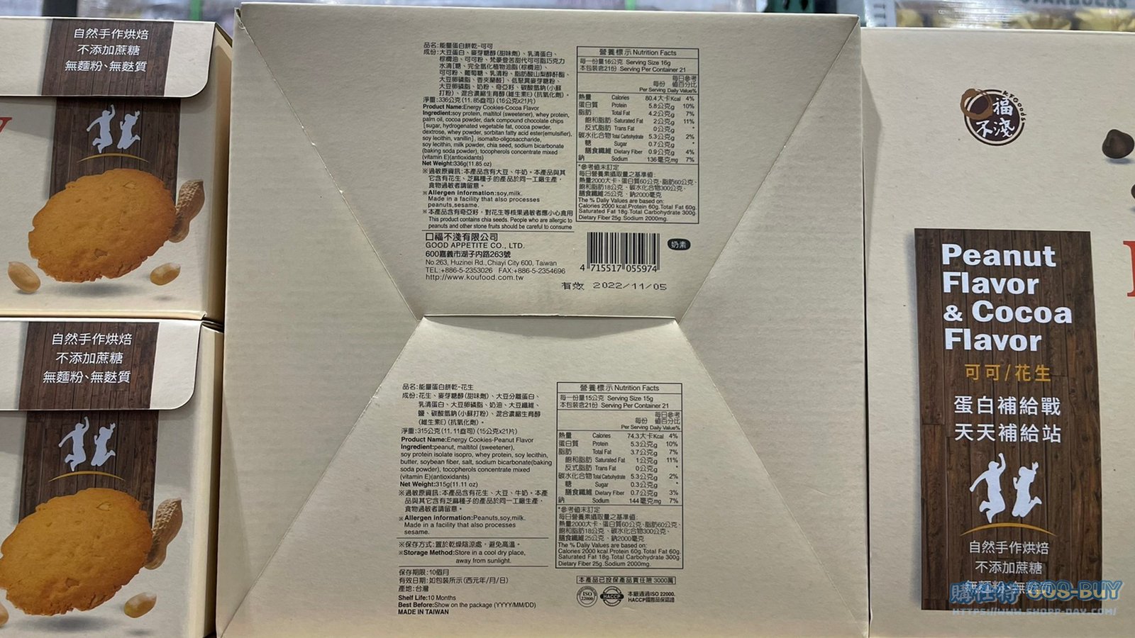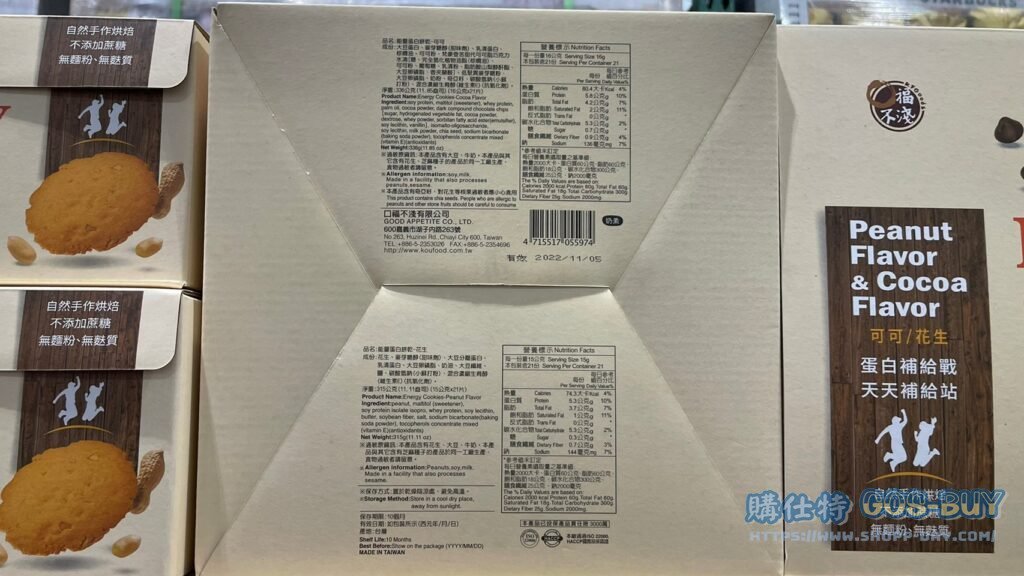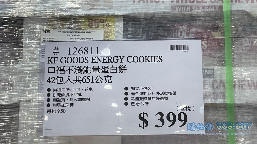 家零食&飲料台灣零食 KF GOODS ENERGY COOKIES 口福不淺能量蛋白餅 42包入共651公克 #126811 By 網站小編 2022 年 3 月 10 日 958 產品資訊 產品資訊 產品名稱KF GOODS ENERGY COOKIES 口福不淺能量蛋白餅 42包入共651公克 #126811價格399產地台灣包裝規格42包入共651公克保存期限10個月備註兩種口味:可可、花生餅乾酥脆不甜膩無麩質、無添加麵粉無添加蔗糖獨立小包裝適合運動及戶外活動攜帶為補充熱量的好選擇→商品問題回報← 相關 標籤餅乾 前一篇文章IDESIGN冰箱萬用收納盒 四件組 #1362193下一篇文章愛之味純濃燕麥(原味) 每瓶340毫升X12入 #97313 網站小編https://shopp-day.com 或許你也感興趣 價格優惠資訊 2025好市多客製生日蛋糕價格表 價格優惠資訊 好市多Line社群加入方法 保健品&藥品 新甘木堅胃腸藥顆粒40包 #194496 購仕特-CosBuy 查詢排行 價格優惠資訊 2025好市多客製生日蛋糕價格表 價格優惠資訊 好市多Line社群加入方法 保健品&藥品 新甘木堅胃腸藥顆粒40包 #194496 價格優惠資訊 2025好市多會員護照-春季專案商品一覽表 價格優惠資訊 好市多美國牛肉整箱銷售價格表(2024/5/7) 裝載更多 熱門推薦 美國零食 科克蘭葡萄乾巧克力#959987 冷藏飲品 BLUE DIAMOND 無糖原味杏仁飲1.89L #129794 西班牙零食 MR.BROWNIE 巧克力布郎尼#153753 泰國零食 A&R牛奶巧克力迷你甜筒餅乾#1744884 比利時零食 科克蘭烈酒與波特酒巧克力 #1351451 裝載更多