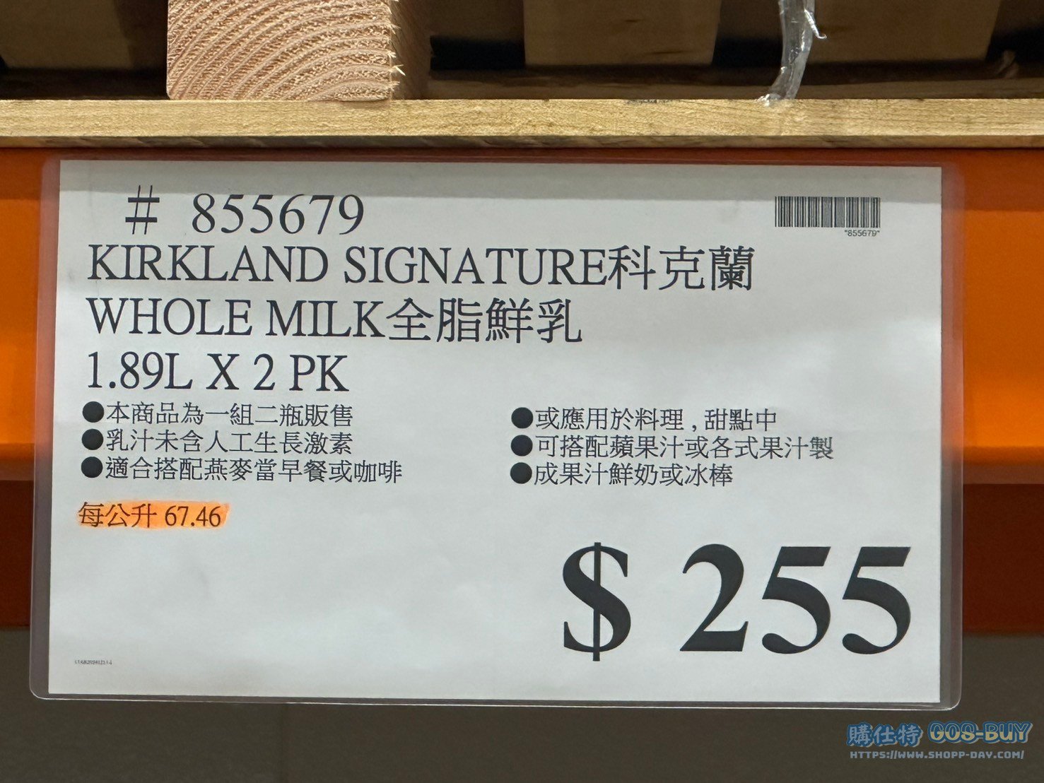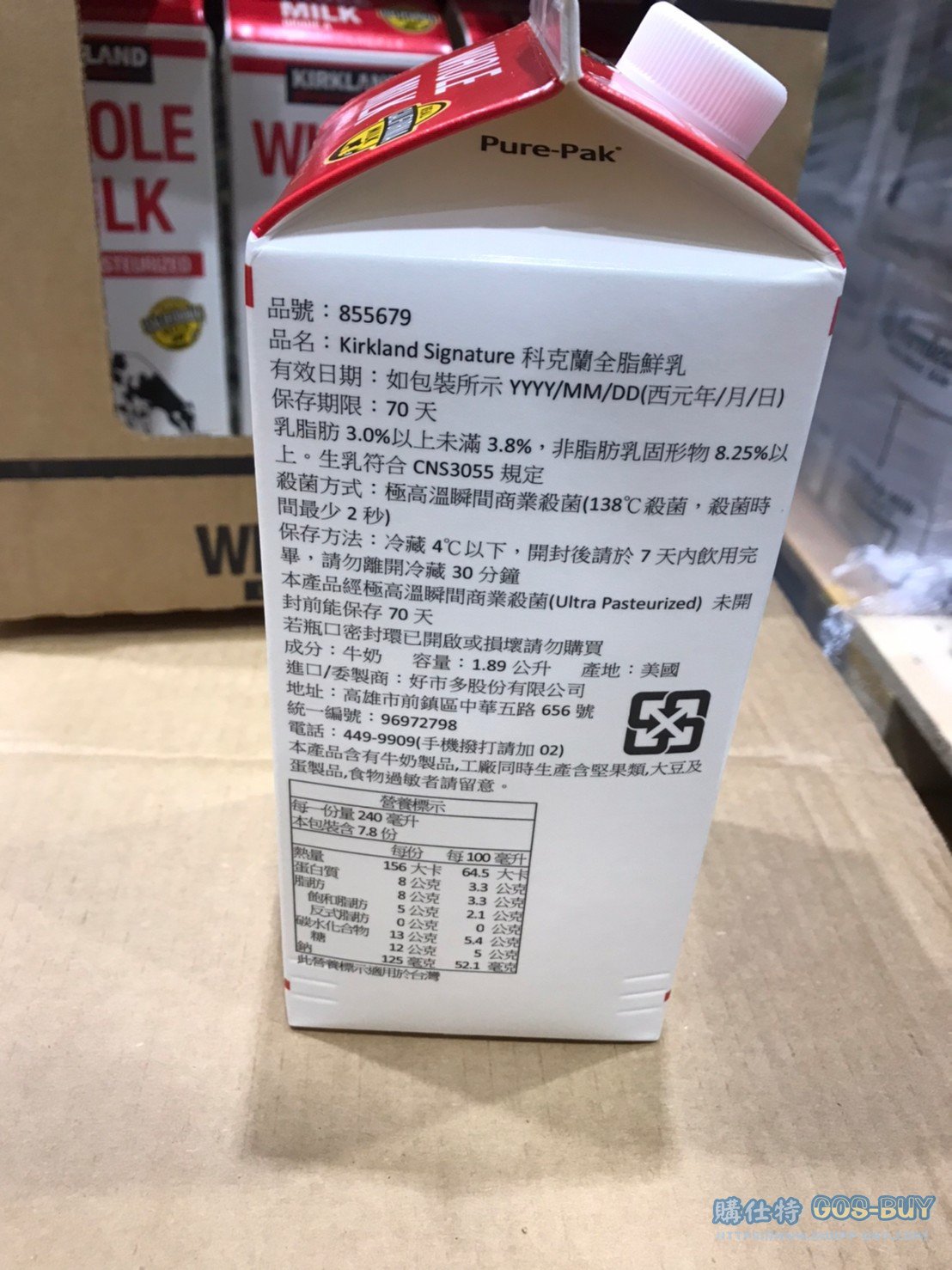 | 產品名稱 | KIRKLAND SIGNATURE科克蘭 WHOLE MILK 全脂鮮乳 1.89L X 2PK #855679 |