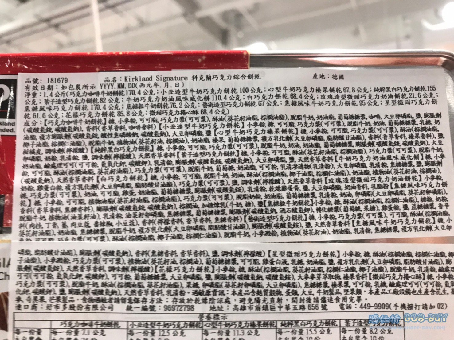 家零食&飲料德國零食 科克蘭 綜合巧克力餅乾1400公克 #181679 By 網站小編 2022 年 1 月 30 日 292 產品資訊 產品資訊 產品名稱KIRKLAND SIGNATURE 科克蘭 綜合巧克力餅乾1400公克 #181679價格529產地德國包裝規格1400公克保存期限依包裝所示備註德國原裝進口內有15種口味餅乾口感香濃有層次適合當下午茶點送禮自用兩相宜2022/9/26查價價格由499漲價為529漲價30元 →商品問題回報← 相關 標籤Kirkland巧克力科克蘭綜合巧克力餅乾 前一篇文章LINDT ASSORTED CHOCOLATE 金色盒裝綜合巧克力 600公克 #118975下一篇文章GUDRUN BELGIAN CHOCOLATE 比利時綜合巧克力禮盒462公克 #132573 網站小編https://shopp-day.com 或許你也感興趣 價格優惠資訊 2025好市多客製生日蛋糕價格表 價格優惠資訊 好市多Line社群加入方法 保健品&藥品 新甘木堅胃腸藥顆粒40包 #194496 購仕特-CosBuy 查詢排行 價格優惠資訊 2025好市多客製生日蛋糕價格表 價格優惠資訊 好市多Line社群加入方法 保健品&藥品 新甘木堅胃腸藥顆粒40包 #194496 價格優惠資訊 2025好市多會員護照-春季專案商品一覽表 價格優惠資訊 好市多美國牛肉整箱銷售價格表(2024/5/7) 裝載更多 熱門推薦 美國零食 科克蘭葡萄乾巧克力#959987 冷藏飲品 BLUE DIAMOND 無糖原味杏仁飲1.89L #129794 西班牙零食 MR.BROWNIE 巧克力布郎尼#153753 泰國零食 A&R牛奶巧克力迷你甜筒餅乾#1744884 比利時零食 科克蘭烈酒與波特酒巧克力 #1351451 裝載更多