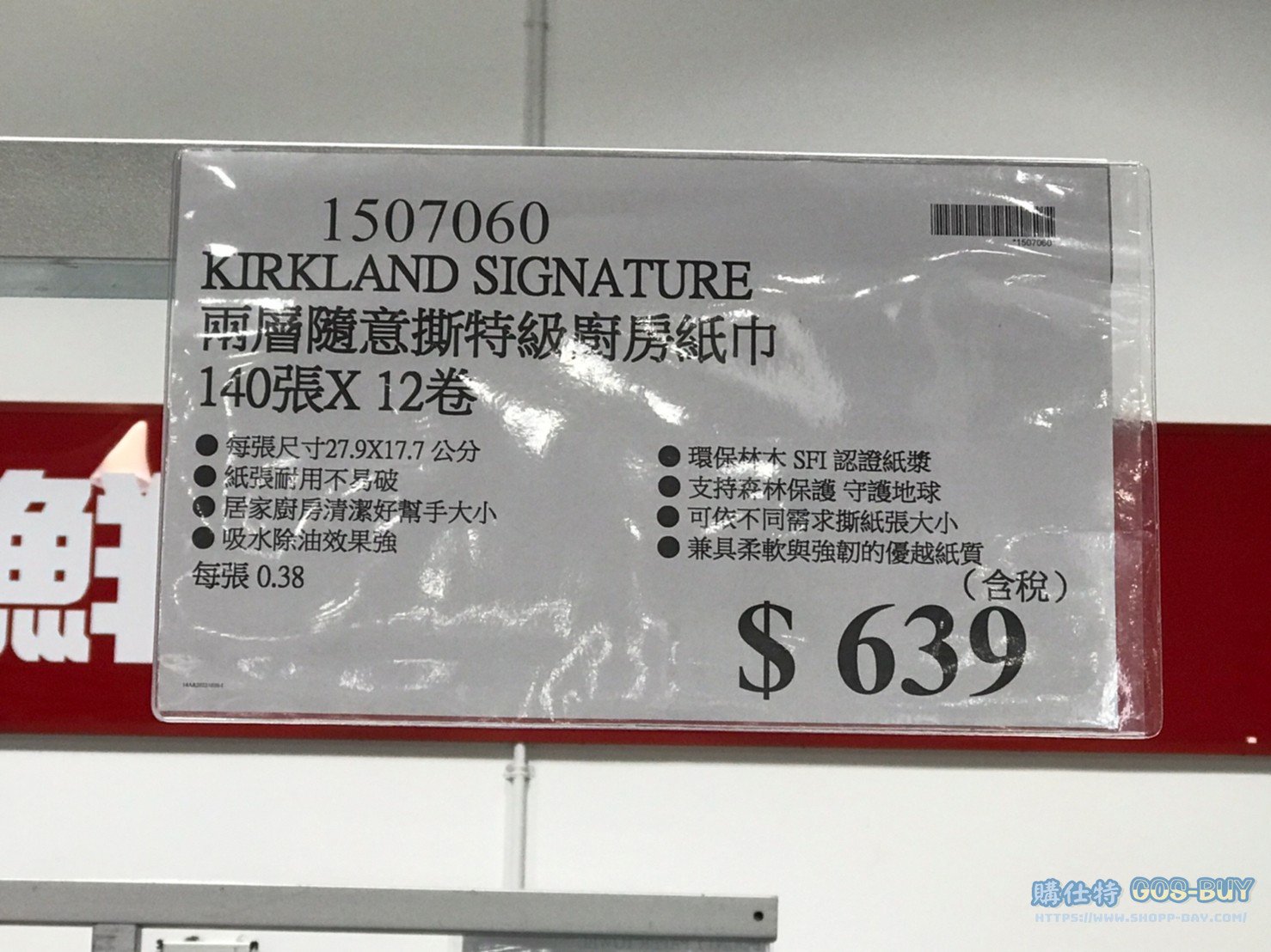 科克蘭兩層隨意撕特級廚房紙巾 #1507060