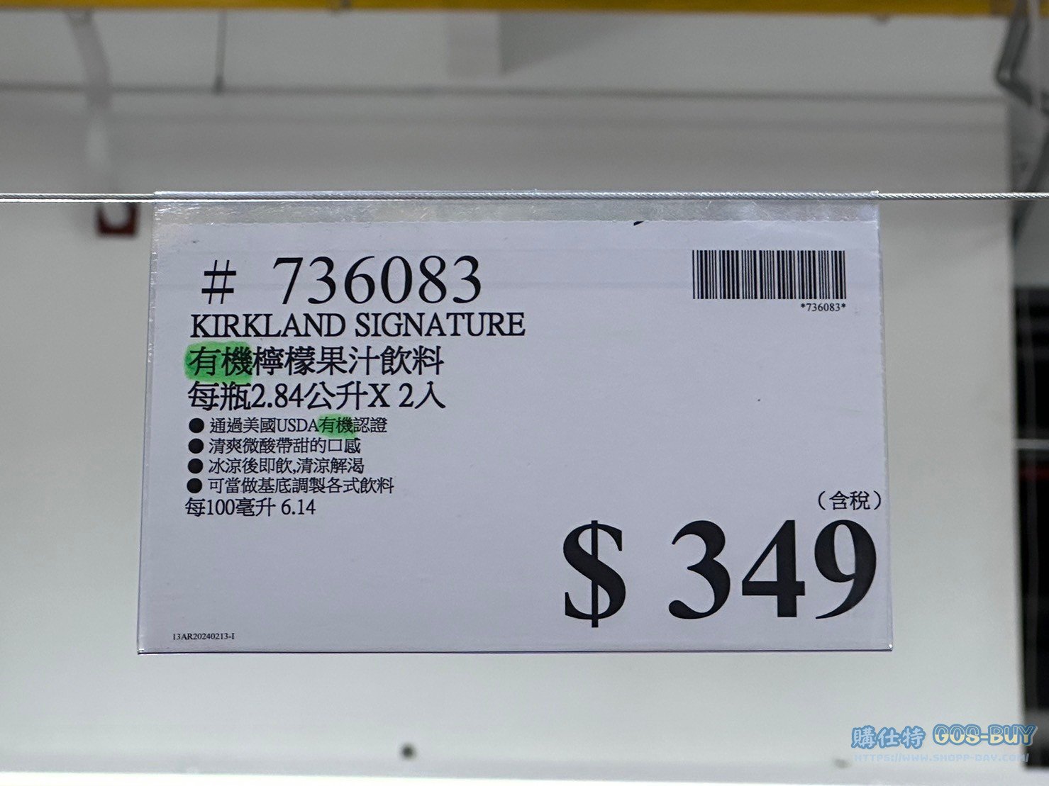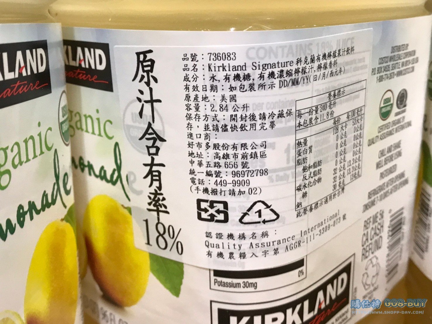 家零食&飲料 科克蘭有機檸檬果汁飲料#736083 By 網站小編 2022 年 5 月 23 日 377 產品資訊 產品資訊 產品名稱 KIRKLAND SIGNATURE 有機檸檬果汁飲料 每瓶2.84公升X2入 #736083 價格 349 產地 美國 包裝規格 2.84公斤X2入 保存期限 依包裝所示 備註 通過美國USDA有機認證清爽微酸帶甜的口感冰涼後即飲,清涼解渴可當做基底調製各式飲料2024/2/22查價價格由295漲價至349漲價54元 →商品問題回報← 相關 標籤Kirkland有機檸檬檸檬汁科克蘭 前一篇文章科克蘭鮮榨蘋果汁#158996下一篇文章科克蘭養殖中熟蝦仁 908G #777004 網站小編https://shopp-day.com 或許你也感興趣 價格優惠資訊 2025好市多客製生日蛋糕價格表 價格優惠資訊 好市多Line社群加入方法 保健品&藥品 新甘木堅胃腸藥顆粒40包 #194496 購仕特-CosBuy 查詢排行 價格優惠資訊 2025好市多客製生日蛋糕價格表 價格優惠資訊 好市多Line社群加入方法 保健品&藥品 新甘木堅胃腸藥顆粒40包 #194496 價格優惠資訊 2025好市多會員護照-春季專案商品一覽表 價格優惠資訊 好市多美國牛肉整箱銷售價格表(2024/5/7) 裝載更多 熱門推薦 美國零食 科克蘭葡萄乾巧克力#959987 冷藏飲品 BLUE DIAMOND 無糖原味杏仁飲1.89L #129794 西班牙零食 MR.BROWNIE 巧克力布郎尼#153753 泰國零食 A&R牛奶巧克力迷你甜筒餅乾#1744884 比利時零食 科克蘭烈酒與波特酒巧克力 #1351451 裝載更多