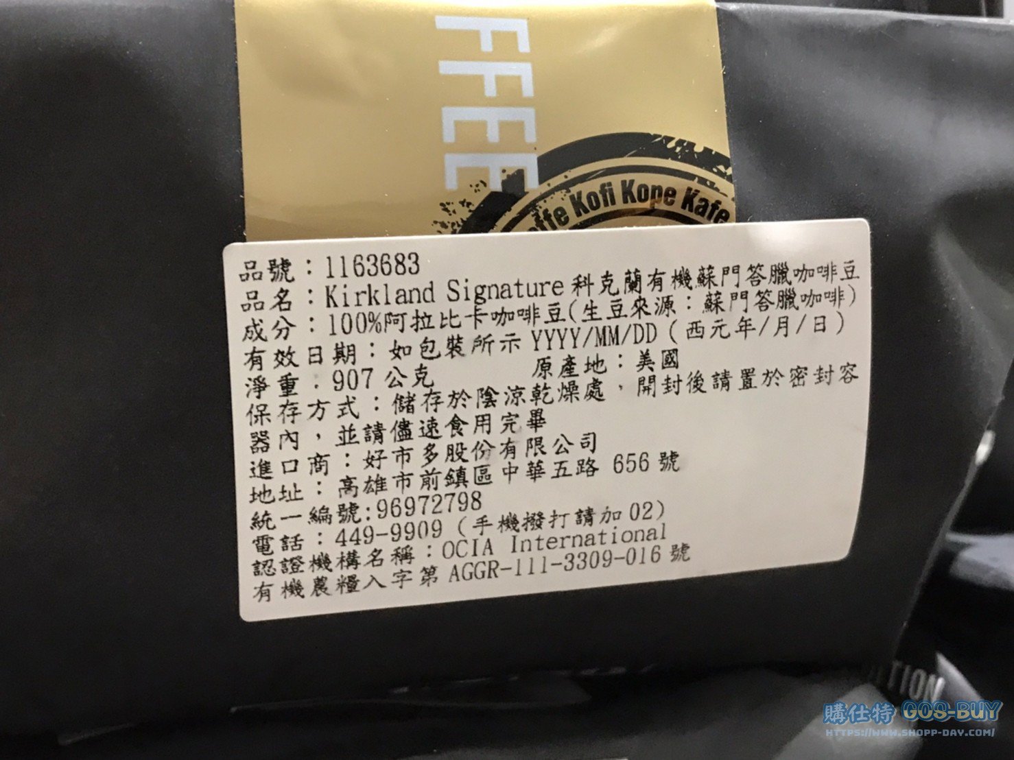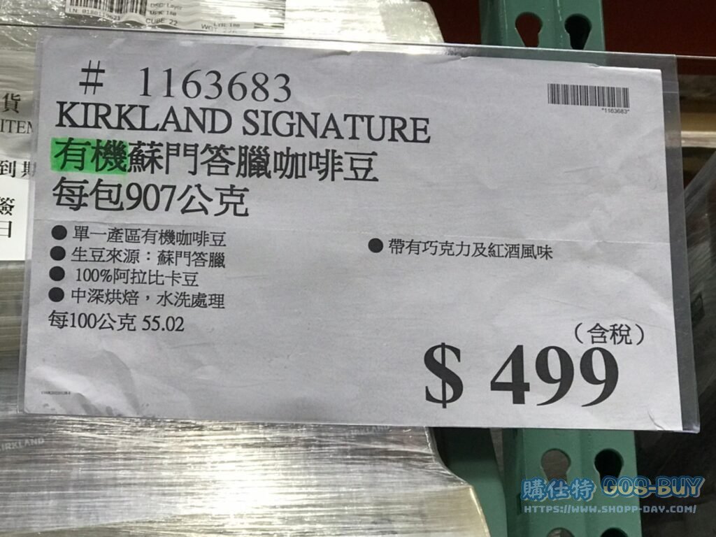 家食品麵包類咖啡製品類 KIRKLAND SIGNATURE 有機蘇門答臘咖啡豆 每包907公克 #1163683 By 網站小編 2022 年 3 月 15 日 213 產品資訊 產品資訊 產品名稱KIRKLAND SIGNATURE 有機蘇門答臘咖啡豆 每包907公克 #1163683價格499產地美國包裝規格907公克保存期限依包裝所示備註單一產區有機咖啡豆生豆來源:蘇門答臘100%阿拉比卡豆中深烘焙,水洗處理帶有巧克力及紅酒風味→商品問題回報← 相關 標籤Kirkland咖啡豆有機科克蘭 前一篇文章日本冷凍讚岐烏龍麵#578725下一篇文章KIRKLAND SIGNATURE 有機耶加雪菲咖啡豆 每包907公克 #1517080 網站小編https://shopp-day.com 或許你也感興趣 價格優惠資訊 2025好市多客製生日蛋糕價格表 價格優惠資訊 好市多Line社群加入方法 保健品&藥品 新甘木堅胃腸藥顆粒40包 #194496 購仕特-CosBuy 查詢排行 價格優惠資訊 2025好市多客製生日蛋糕價格表 價格優惠資訊 好市多Line社群加入方法 保健品&藥品 新甘木堅胃腸藥顆粒40包 #194496 價格優惠資訊 2025好市多會員護照-春季專案商品一覽表 價格優惠資訊 好市多美國牛肉整箱銷售價格表(2024/5/7) 裝載更多 熱門推薦 價格優惠資訊 2025好市多客製生日蛋糕價格表 價格優惠資訊 好市多美國牛肉整箱銷售價格表(2024/5/7) 價格優惠資訊 好市多日本和牛價格表 2024.4.29更新 冷藏食品 美國特選無骨牛小排火鍋片#25737 冷藏食品 舊振南英式馬芬米福堡#143387 裝載更多