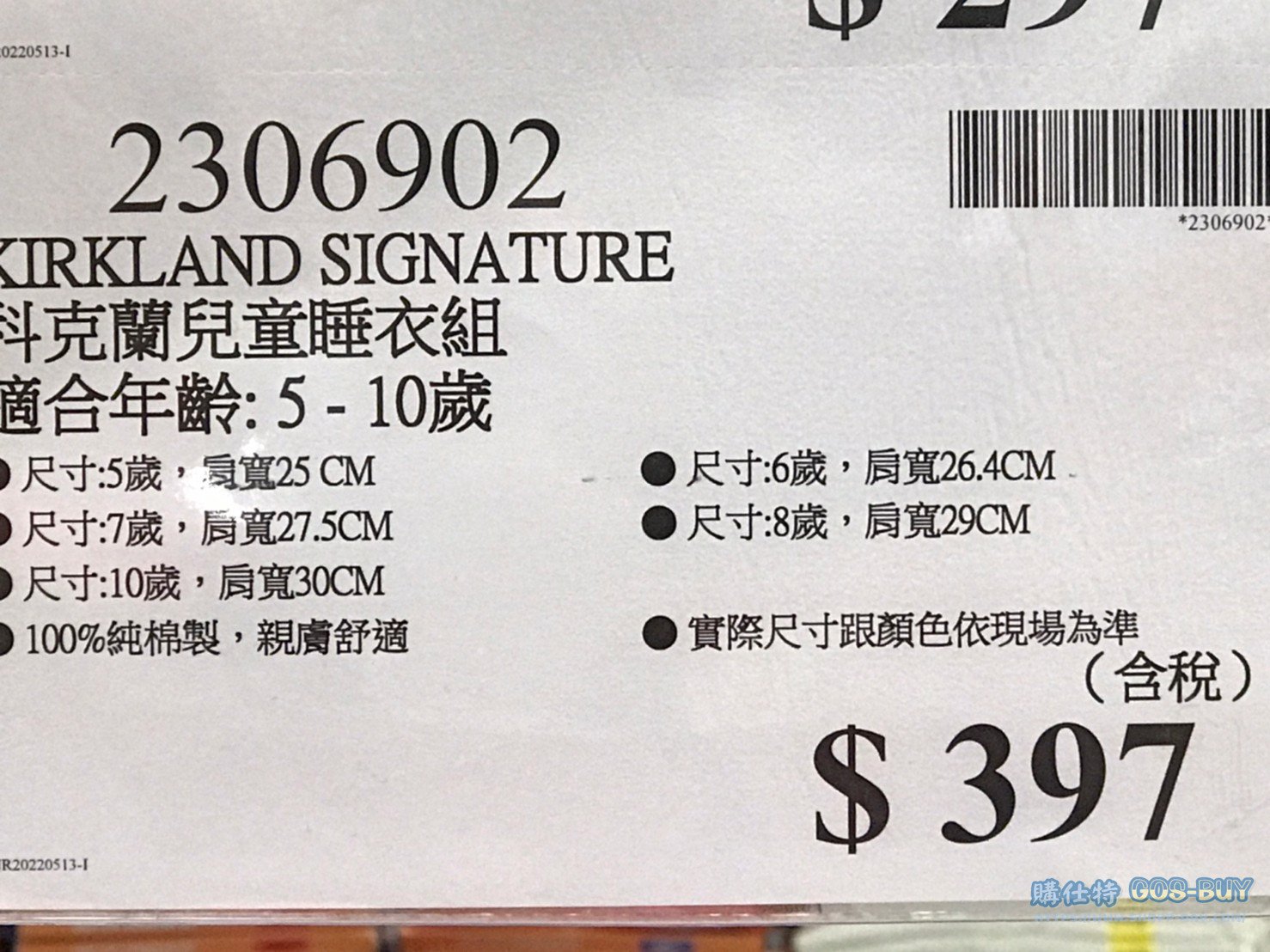 KIRKLAND SIGNATURE科克蘭女童睡衣組 #2306902