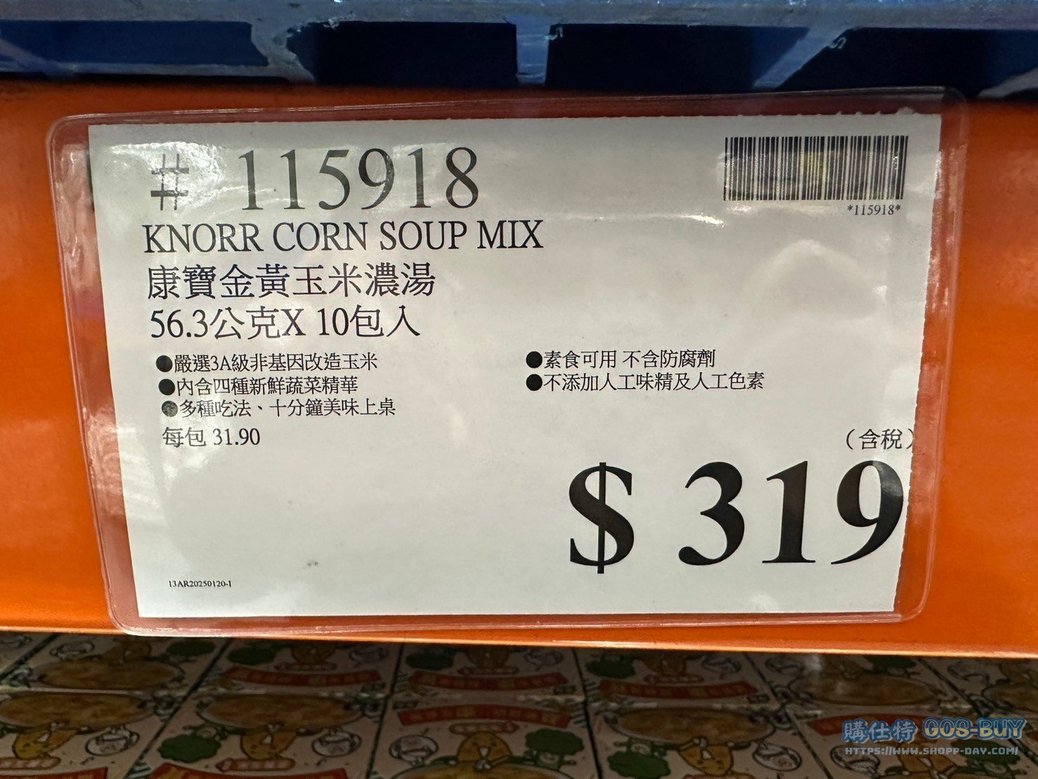 | 產品名稱 | KNORR CORN SOUP MIX 56.3G X 10 PACK 康寶金黃玉米濃湯 56.3公克X10包 #115918 |