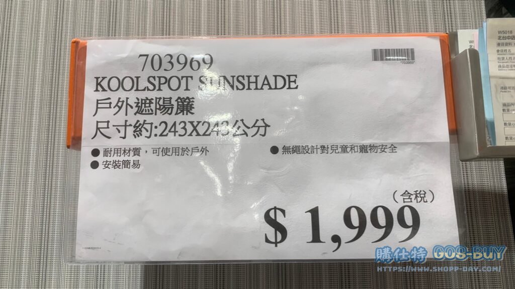KOOLSPOT SUNSHADE 戶外遮陽簾 尺寸約:243X243公分 #703969