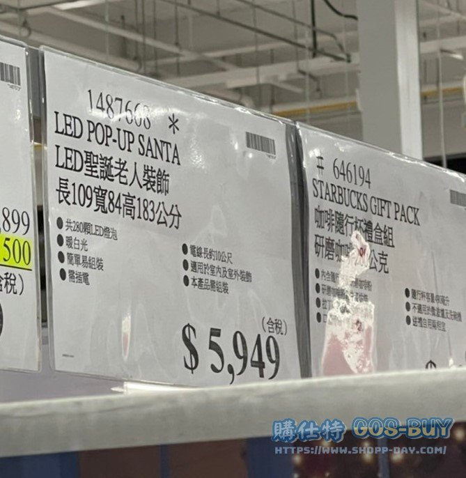 家玩具應景裝飾類應景裝飾 LED POP-UP SANTA LED聖誕老人裝飾 長109寬84高183公分 #1487668 By 網站小編 2022 年 2 月 28 日 231 產品資訊 產品資訊 產品名稱LED POP-UP SANTA LED聖誕老人裝飾 長109寬84高183公分 #1487668價格5949產地中國包裝規格一入( 長109寬84高183公分)保存期限N/A備註共280顆LED燈泡電線長約10公尺暖白光、簡單易組裝、需插電 適用於室內及室外裝飾本產品需組裝→商品問題回報← 相關 標籤LED耶誕節聖誕節聖誕老人 前一篇文章8FT LED NUTCRACKER 8呎LED胡桃鉗士兵 長65寬65高244公分 #1486943下一篇文章STARBUCKS GIFT PACK 咖啡馬克杯禮盒組 咖啡共140公克 #646193 網站小編https://shopp-day.com 或許你也感興趣 價格優惠資訊 2025好市多客製生日蛋糕價格表 價格優惠資訊 好市多Line社群加入方法 保健品&藥品 新甘木堅胃腸藥顆粒40包 #194496 購仕特-CosBuy 查詢排行 價格優惠資訊 2025好市多客製生日蛋糕價格表 價格優惠資訊 好市多Line社群加入方法 保健品&藥品 新甘木堅胃腸藥顆粒40包 #194496 價格優惠資訊 2025好市多會員護照-春季專案商品一覽表 價格優惠資訊 好市多美國牛肉整箱銷售價格表(2024/5/7) 裝載更多 熱門推薦 小孩玩具 LILFANT 雙面遊戲地墊 韓國製 #218570 應景裝飾 8FT LED NUTCRACKER 8呎LED胡桃鉗士兵 長65寬65高244公分 #1486943 應景裝飾 J’ADORE花園多肉治癒系列#139640 健身用品 PARKLON DUAL CUSHION MAT 雙層遊戲軟墊 #635029 應景裝飾 DISNEY TABLE CAROLER 米奇與米妮聖誕音樂裝飾 長31X寬20X高39公分 #1486471 裝載更多
