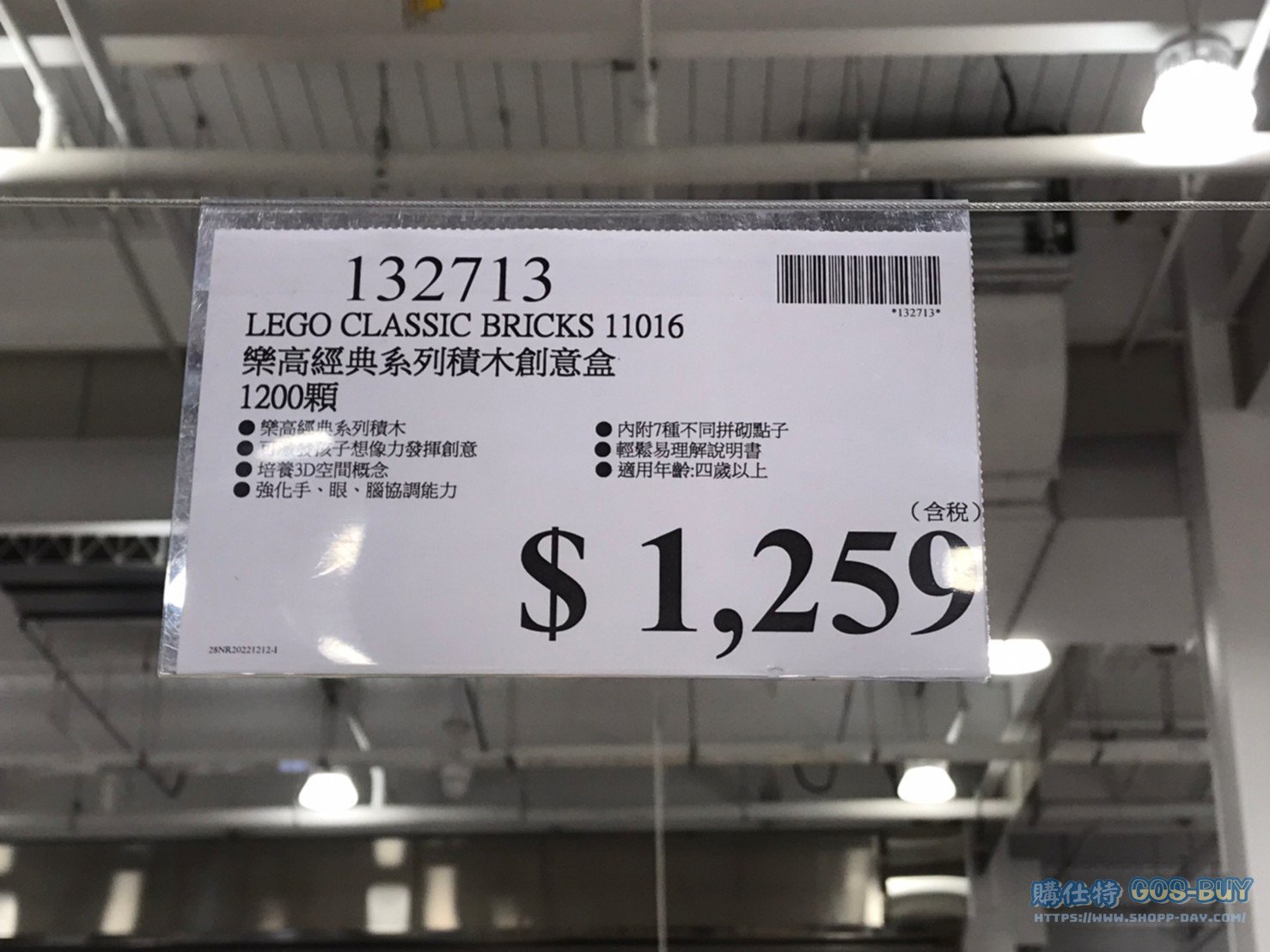 家玩具應景裝飾類小孩玩具 LEGO樂高經典系列積木創意盒#11016#132713 By 網站小編 2022 年 2 月 20 日 205 產品資訊 產品資訊 產品名稱LEGO CLASSIC BRICKS 樂高經典系列積木創意盒1200塊 11016 #132713價格1259產地中國包裝規格1200塊 型號:11016保存期限N/A備註樂高經典系列積木可激發孩子想像力發會創意培養3D空間概念強化手、眼、腦協調能力內附7種不同拼砌點子輕鬆易理解說明書適用年齡:四歲以上2022/12/16查價價格由1199漲價為1259漲價60元→商品問題回報← 相關 標籤LEGO樂高益智積木 前一篇文章MICROTEXNYC DECO PILLOW 燈芯絨質感抱枕二入組 尺寸:50X50公分 #130880下一篇文章SINCERELY綜合乾酪組340克#1214274 網站小編https://shopp-day.com 或許你也感興趣 價格優惠資訊 2025好市多客製生日蛋糕價格表 價格優惠資訊 好市多Line社群加入方法 保健品&藥品 新甘木堅胃腸藥顆粒40包 #194496 購仕特-CosBuy 查詢排行 價格優惠資訊 2025好市多客製生日蛋糕價格表 價格優惠資訊 好市多Line社群加入方法 保健品&藥品 新甘木堅胃腸藥顆粒40包 #194496 價格優惠資訊 2025好市多會員護照-春季專案商品一覽表 價格優惠資訊 好市多美國牛肉整箱銷售價格表(2024/5/7) 裝載更多 熱門推薦 小孩玩具 LILFANT 雙面遊戲地墊 韓國製 #218570 應景裝飾 8FT LED NUTCRACKER 8呎LED胡桃鉗士兵 長65寬65高244公分 #1486943 應景裝飾 J’ADORE花園多肉治癒系列#139640 健身用品 PARKLON DUAL CUSHION MAT 雙層遊戲軟墊 #635029 應景裝飾 DISNEY TABLE CAROLER 米奇與米妮聖誕音樂裝飾 長31X寬20X高39公分 #1486471 裝載更多