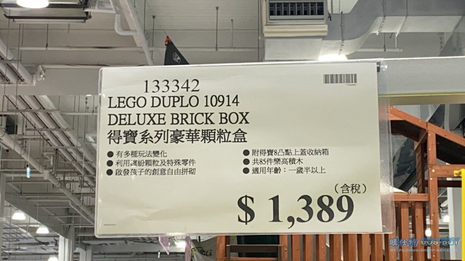 家玩具應景裝飾類小孩玩具 LEGO DUPLO 10914 DELUXE BRICK BOX 得寶系列豪華顆粒盒 #133342 By 網站小編 2022 年 3 月 8 日 230 產品資訊 產品資訊 產品名稱LEGO DUPLO 10914 DELUXE BRICK BOX 得寶系列豪華顆粒盒 #133342價格1389產地中國包裝規格一組(共85件 型號:10914)保存期限N/A備註有多種玩法變化利用繽紛顆粒及特殊零件啟發孩子的創意自由拚砌附得寶8凸點上蓋收納箱共85件樂高積木適用年齡:一歲以上→商品問題回報← 相關 標籤LEGO樂高積木玩具 前一篇文章KUZE FUKU YUZUMISO SAUCE 久世福柚子味噌醬917毫升 #132097下一篇文章PLAYGO BUILD YOUR OWN DINO PALYGO DIY 益智恐龍組70件組 #133264 網站小編https://shopp-day.com 或許你也感興趣 價格優惠資訊 2025好市多客製生日蛋糕價格表 價格優惠資訊 好市多Line社群加入方法 保健品&藥品 新甘木堅胃腸藥顆粒40包 #194496 購仕特-CosBuy 查詢排行 價格優惠資訊 2025好市多客製生日蛋糕價格表 價格優惠資訊 好市多Line社群加入方法 保健品&藥品 新甘木堅胃腸藥顆粒40包 #194496 價格優惠資訊 2025好市多會員護照-春季專案商品一覽表 價格優惠資訊 好市多美國牛肉整箱銷售價格表(2024/5/7) 裝載更多 熱門推薦 小孩玩具 LILFANT 雙面遊戲地墊 韓國製 #218570 應景裝飾 8FT LED NUTCRACKER 8呎LED胡桃鉗士兵 長65寬65高244公分 #1486943 應景裝飾 J’ADORE花園多肉治癒系列#139640 健身用品 PARKLON DUAL CUSHION MAT 雙層遊戲軟墊 #635029 應景裝飾 DISNEY TABLE CAROLER 米奇與米妮聖誕音樂裝飾 長31X寬20X高39公分 #1486471 裝載更多
