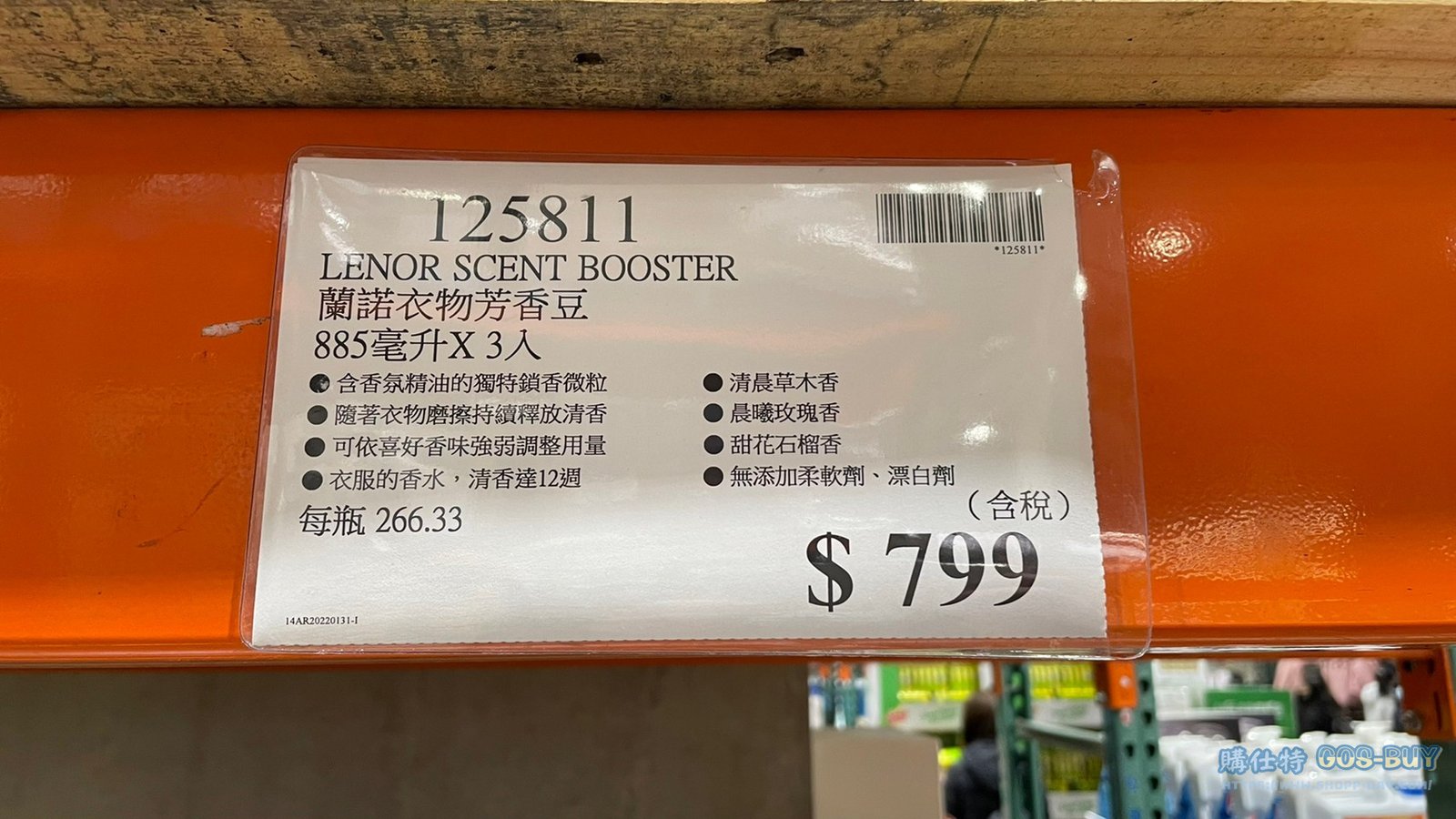家廚房與居家生活相關 蘭諾衣物芳香豆 885毫升X3入 #125811 By 網站小編 2021 年 11 月 1 日 287 產品資訊 產品資訊 產品名稱LENORSCENTBOOSTER 蘭諾衣物芳香豆 885毫升X3入 #125811價格799產地中國包裝規格885毫升X3入保存期限2年備註含香氛精油的獨特鎖香微粒隨者衣物磨擦持續釋放清香可依喜好香味強弱調整用量衣服的香水,清香達12週清晨草本香 晨曦玫瑰香甜花石榴香 無添加柔軟劑、漂白劑→商品問題回報← 相關 標籤洗衣精芳香豆蘭諾 前一篇文章橘子工坊洗淨病毒酵素洗衣精#218568下一篇文章OVEN PAPER 食物烹調專用紙 30公分X50公尺/2入 #111887 網站小編https://shopp-day.com[td_block_7 block_template_id="td_block_template_8" custom_title="大家也在找" border_color="#81d742" category_id="_current_tag"] 或許你也感興趣 價格優惠資訊 2025好市多客製生日蛋糕價格表 價格優惠資訊 好市多Line社群加入方法 保健品&藥品 新甘木堅胃腸藥顆粒40包 #194496 購仕特-CosBuy 查詢排行 價格優惠資訊 2025好市多客製生日蛋糕價格表 價格優惠資訊 好市多Line社群加入方法 保健品&藥品 新甘木堅胃腸藥顆粒40包 #194496 價格優惠資訊 2025好市多會員護照-春季專案商品一覽表 價格優惠資訊 好市多美國牛肉整箱銷售價格表(2024/5/7) 裝載更多 熱門推薦 廚房與居家生活相關 普拿疼伏冒熱飲20包 #84499 廚房與居家生活相關 DOMAINE DE LA BAUME 波姆酒莊金牌FITOU紅酒 #121971 廚房與居家生活相關 SIMON LI三人座牛皮沙發#1695608 廚房與居家生活相關 TAISHO大正胃腸藥顆粒52包 #126969 廚房與居家生活相關 IDEA NUOVA 摺疊椅 #1393843 裝載更多