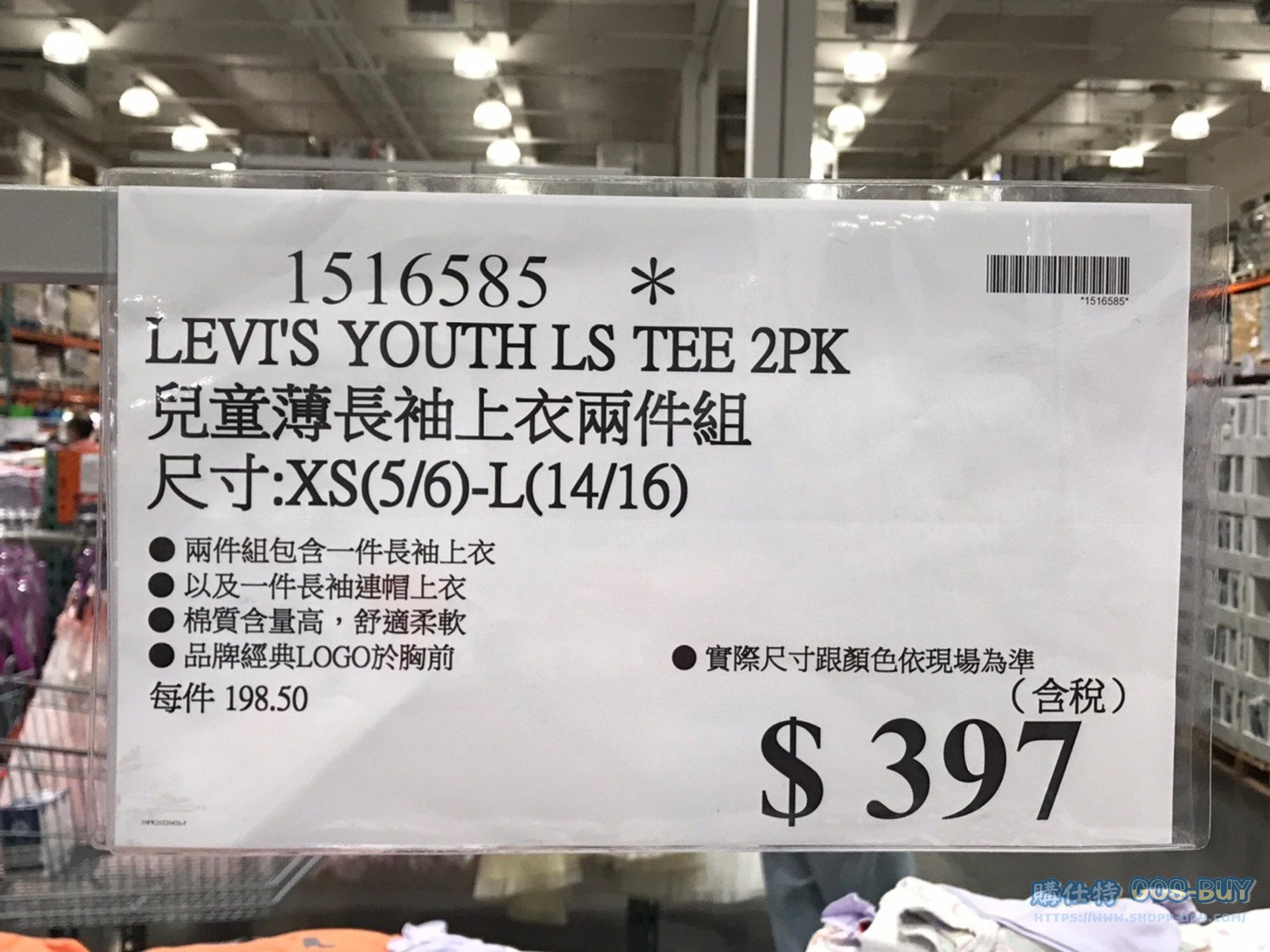 家服飾類配件類兒童 LEVI’S兒童薄長袖上衣兩件組 #1516585 By 網站小編 2022 年 6 月 9 日 420 產品資訊 產品資訊 產品名稱LEVI’S YOUTH LS TEE 2PK 兒童薄長袖上衣兩件組 尺寸:XS(5/6)-L(14/16) #1516585價格579(出清價397)產地依包裝所示包裝規格兩件組(尺寸:XS(5/6)-L(14/16) )保存期限 N/A備註兩件組包含一件長袖上衣及一件長袖連帽上衣棉質含量高,舒適柔軟品牌經典LOGO於胸前實際尺寸跟顏色依現場為準→商品問題回報← 相關 標籤LEVI'S上衣兒童長袖 前一篇文章PEKKLE INFANT嬰兒服飾四件套組 #1572798下一篇文章FILA男童短褲兩件組 #1467775 網站小編https://shopp-day.com 或許你也感興趣 價格優惠資訊 2025好市多客製生日蛋糕價格表 價格優惠資訊 好市多Line社群加入方法 保健品&藥品 新甘木堅胃腸藥顆粒40包 #194496 購仕特-CosBuy 查詢排行 價格優惠資訊 2025好市多客製生日蛋糕價格表 價格優惠資訊 好市多Line社群加入方法 保健品&藥品 新甘木堅胃腸藥顆粒40包 #194496 價格優惠資訊 2025好市多會員護照-春季專案商品一覽表 價格優惠資訊 好市多美國牛肉整箱銷售價格表(2024/5/7) 裝載更多 熱門推薦 廚房與居家生活相關 普拿疼伏冒熱飲20包 #84499 廚房與居家生活相關 DOMAINE DE LA BAUME 波姆酒莊金牌FITOU紅酒 #121971 廚房與居家生活相關 SIMON LI三人座牛皮沙發#1695608 廚房與居家生活相關 TAISHO大正胃腸藥顆粒52包 #126969 廚房與居家生活相關 IDEA NUOVA 摺疊椅 #1393843 裝載更多