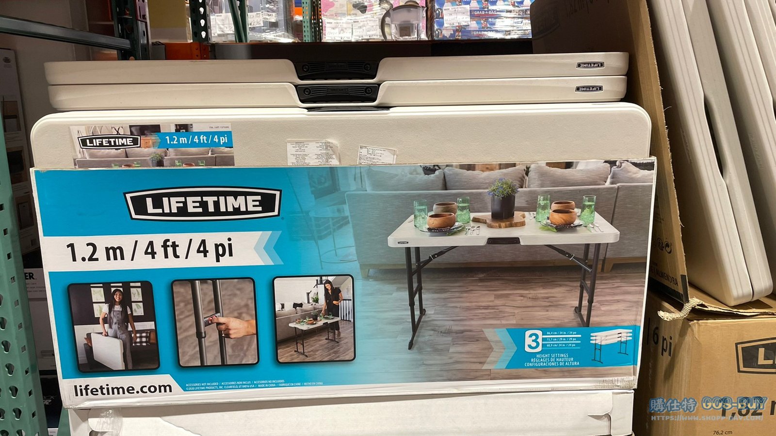 | 產品名稱 | LIFETIME 4-FOOT TABLE 四呎折疊桌/三段高度調整 長122 X 寬61 X 最高86CM #1375000 |