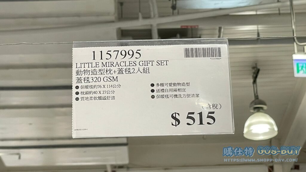 家廚房與居家生活相關寢具類 LITTLE MIRACLES GIFT SET 動物造型枕+蓋毯2入組 蓋毯320 GSM #1157995 By 網站小編 2022 年 2 月 2 日 501 產品資訊 產品資訊 產品名稱LITTLE MIRACLES GIFT SET 動物造型枕+蓋毯2入組 蓋毯320 GSM #1157995價格515產地中國包裝規格 動物造型枕+蓋毯2入組保存期限依包裝所示備註保暖毯約76X114公分枕頭約40X27公分多種可愛動物造型送禮自用兩相宜質地柔軟觸感舒適 保暖毯可機洗方便清潔 →商品問題回報← 相關 標籤兒童枕頭毛毯毯子 前一篇文章3M TOILET SCRUBBER 百利菜瓜布馬桶刷組 1握把+24刷頭+1底座 #131115下一篇文章科克蘭四號鹼性電池48入 #176073 網站小編https://shopp-day.com 或許你也感興趣 價格優惠資訊 2025好市多客製生日蛋糕價格表 價格優惠資訊 好市多Line社群加入方法 保健品&藥品 新甘木堅胃腸藥顆粒40包 #194496 購仕特-CosBuy 查詢排行 價格優惠資訊 2025好市多客製生日蛋糕價格表 價格優惠資訊 好市多Line社群加入方法 保健品&藥品 新甘木堅胃腸藥顆粒40包 #194496 價格優惠資訊 2025好市多會員護照-春季專案商品一覽表 價格優惠資訊 好市多美國牛肉整箱銷售價格表(2024/5/7) 裝載更多 熱門推薦 廚房與居家生活相關 普拿疼伏冒熱飲20包 #84499 廚房與居家生活相關 DOMAINE DE LA BAUME 波姆酒莊金牌FITOU紅酒 #121971 廚房與居家生活相關 SIMON LI三人座牛皮沙發#1695608 廚房與居家生活相關 TAISHO大正胃腸藥顆粒52包 #126969 廚房與居家生活相關 IDEA NUOVA 摺疊椅 #1393843 裝載更多