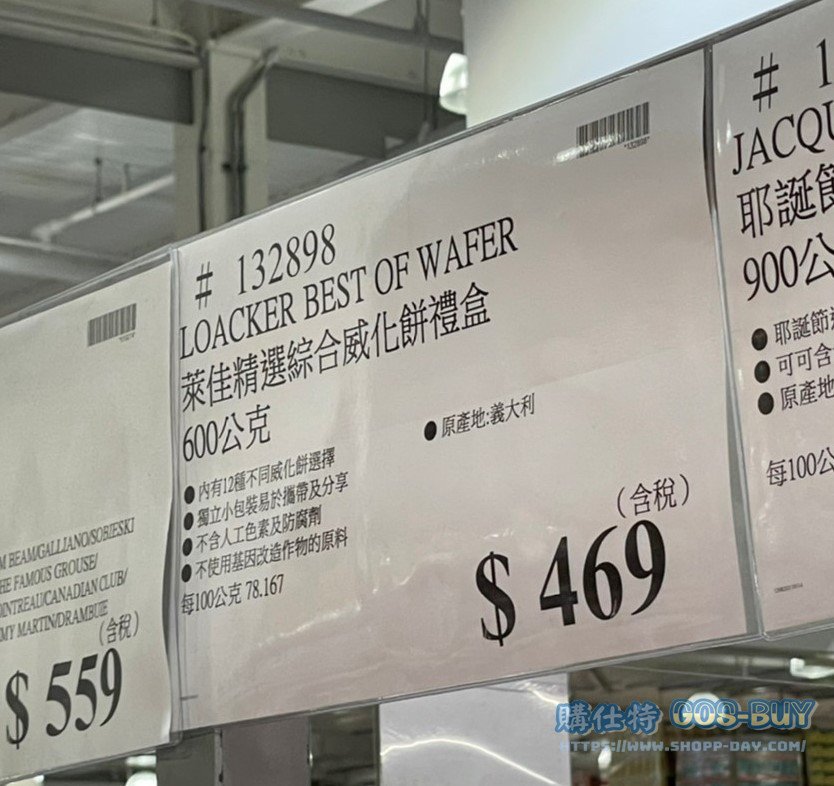家零食&飲料義大利零食 LOACKER BEST OF WAFER 萊佳精選綜合威化餅禮盒 600公克 #132898 By 網站小編 2022 年 2 月 25 日 844 產品資訊 產品資訊 產品名稱LOACKER BEST OF WAFER 萊佳精選綜合威化餅禮盒 600公克 #132898價格469產地義大利包裝規格600克保存期限14個月備註內有12種不同威化餅選擇獨立小包裝易於攜帶及分享不含人工色素及防腐劑不使用基因改造作物的原料→商品問題回報← 相關 標籤威化餅禮盒綜合 前一篇文章ST.MICHEL GALETTES 海鹽奶油餅乾 每罐450公克 #125130下一篇文章GOLDEN CREAM CHEESE TART 12CT 黃金流沙乳酪塔12入 #125703 網站小編https://shopp-day.com[td_block_7 block_template_id="td_block_template_8" custom_title="大家也在找" border_color="#81d742" category_id="_current_tag"] 或許你也感興趣 價格優惠資訊 2025好市多客製生日蛋糕價格表 價格優惠資訊 好市多Line社群加入方法 保健品&藥品 新甘木堅胃腸藥顆粒40包 #194496 購仕特-CosBuy 查詢排行 價格優惠資訊 2025好市多客製生日蛋糕價格表 價格優惠資訊 好市多Line社群加入方法 保健品&藥品 新甘木堅胃腸藥顆粒40包 #194496 價格優惠資訊 2025好市多會員護照-春季專案商品一覽表 價格優惠資訊 好市多美國牛肉整箱銷售價格表(2024/5/7) 裝載更多 熱門推薦 美國零食 科克蘭葡萄乾巧克力#959987 冷藏飲品 BLUE DIAMOND 無糖原味杏仁飲1.89L #129794 西班牙零食 MR.BROWNIE 巧克力布郎尼#153753 泰國零食 A&R牛奶巧克力迷你甜筒餅乾#1744884 比利時零食 科克蘭烈酒與波特酒巧克力 #1351451 裝載更多