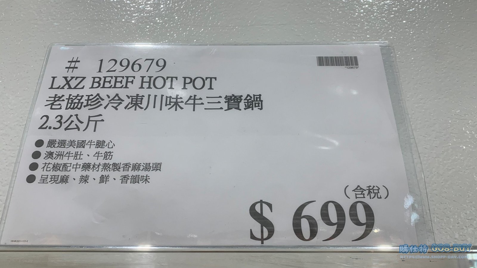 家食品麵包類冷凍食品 LXZ BEEF HOT POT 老協珍冷凍川味牛三寶鍋 2.3公斤 #129679 By 網站小編 2021 年 12 月 28 日 222 產品資訊 產品資訊 產品名稱LXZ BEEF HOT POT 老協珍冷凍川味牛三寶鍋 2.3公斤 #129679價格699產地台灣包裝規格2.3公斤保存期限依包裝所示備註 →商品問題回報← 相關 標籤川味牛三寶牛肉鍋老協珍 前一篇文章LXZ GLUTINOUS RICE WITH CHINESE SAUSAGE&SCALLOP 老協珍干貝臘味飯 1010G #116506下一篇文章SYL VANIAN FAMILIES 森林家族天藍三層別墅 #133773 網站小編https://shopp-day.com 或許你也感興趣 價格優惠資訊 2025好市多客製生日蛋糕價格表 價格優惠資訊 好市多Line社群加入方法 保健品&藥品 新甘木堅胃腸藥顆粒40包 #194496 購仕特-CosBuy 查詢排行 價格優惠資訊 2025好市多客製生日蛋糕價格表 價格優惠資訊 好市多Line社群加入方法 保健品&藥品 新甘木堅胃腸藥顆粒40包 #194496 價格優惠資訊 2025好市多會員護照-春季專案商品一覽表 價格優惠資訊 好市多美國牛肉整箱銷售價格表(2024/5/7) 裝載更多 熱門推薦 價格優惠資訊 2025好市多客製生日蛋糕價格表 價格優惠資訊 好市多美國牛肉整箱銷售價格表(2024/5/7) 價格優惠資訊 好市多日本和牛價格表 2024.4.29更新 冷藏食品 美國特選無骨牛小排火鍋片#25737 冷藏食品 舊振南英式馬芬米福堡#143387 裝載更多