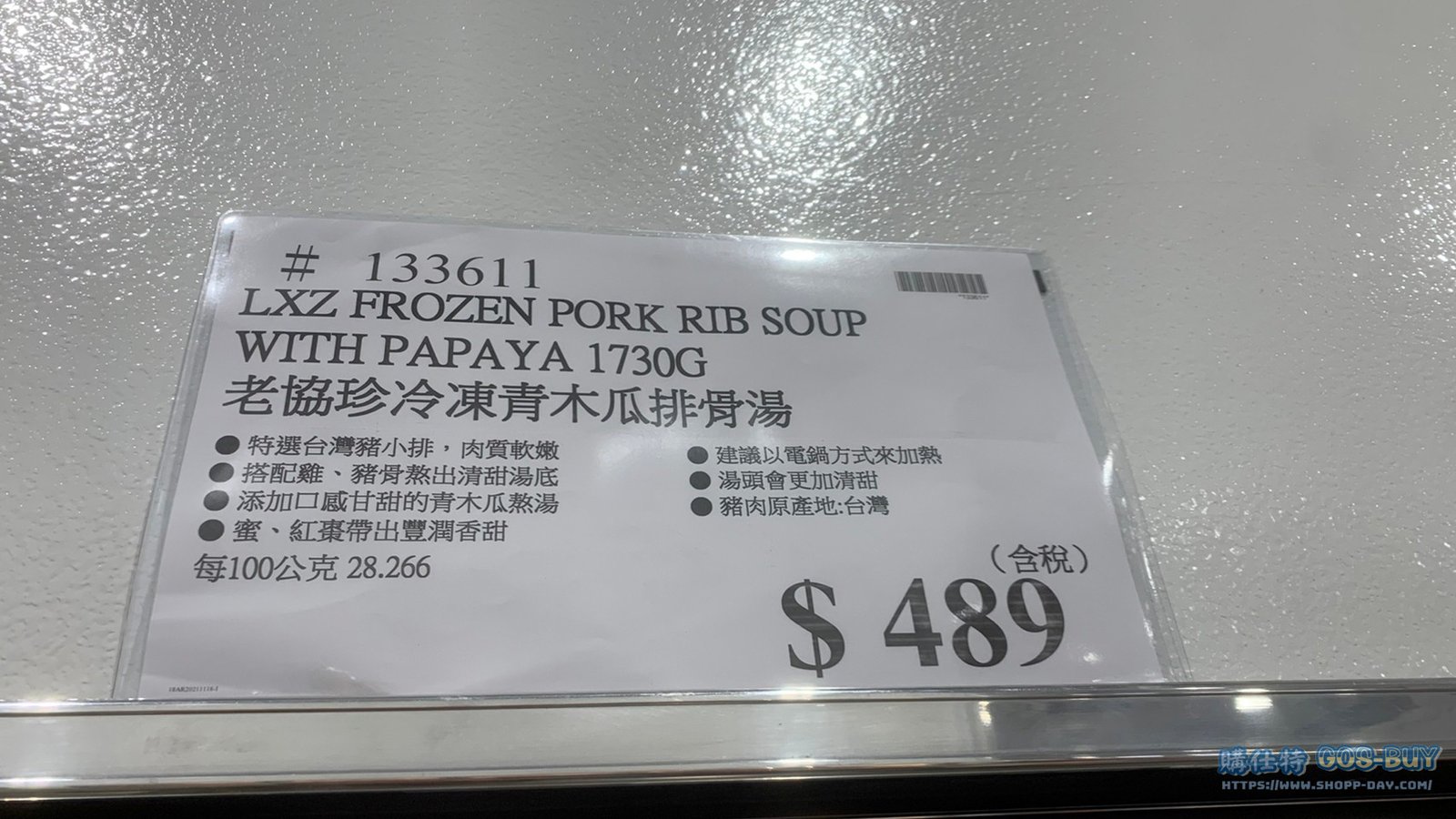 家食品麵包類冷凍食品 LXZ FROZEN PORK RIB SOUP WITH PAPAYA 1730G 老協珍冷凍青木瓜排骨湯 #133611 By 網站小編 2021 年 12 月 28 日 192 產品資訊 產品資訊 產品名稱LXZ FROZEN PORK RIB SOUP WITH PAPAYA 1730G 老協珍冷凍青木瓜排骨湯 #133611價格489產地台灣包裝規格1730G保存期限依包裝所示備註 →商品問題回報← 相關 標籤排骨湯老協珍青木瓜 前一篇文章SYL VANIAN FAMILIES 森林家族森林大樹小學 #133772下一篇文章晶華冷凍花菇干貝雞湯 2600公克 #130288 網站小編https://shopp-day.com 或許你也感興趣 價格優惠資訊 2025好市多客製生日蛋糕價格表 價格優惠資訊 好市多Line社群加入方法 保健品&藥品 新甘木堅胃腸藥顆粒40包 #194496 購仕特-CosBuy 查詢排行 價格優惠資訊 2025好市多客製生日蛋糕價格表 價格優惠資訊 好市多Line社群加入方法 保健品&藥品 新甘木堅胃腸藥顆粒40包 #194496 價格優惠資訊 2025好市多會員護照-春季專案商品一覽表 價格優惠資訊 好市多美國牛肉整箱銷售價格表(2024/5/7) 裝載更多 熱門推薦 價格優惠資訊 2025好市多客製生日蛋糕價格表 價格優惠資訊 好市多美國牛肉整箱銷售價格表(2024/5/7) 價格優惠資訊 好市多日本和牛價格表 2024.4.29更新 冷藏食品 美國特選無骨牛小排火鍋片#25737 冷藏食品 舊振南英式馬芬米福堡#143387 裝載更多