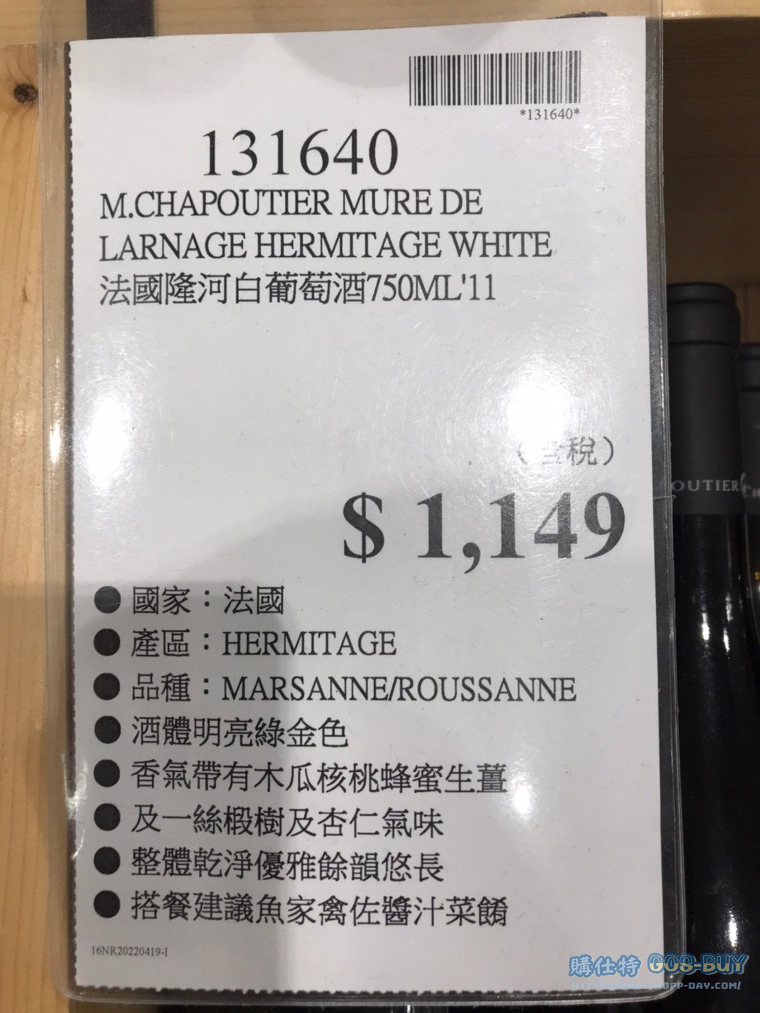 法國隆河白葡萄酒 750ML’11 #131640