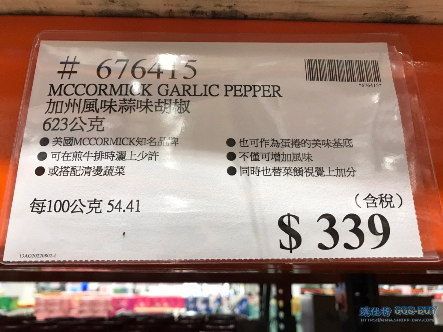 家食品麵包類調味料 MCCORMICK加州風味蒜味胡椒 623公克 #676415 By 網站小編 2022 年 2 月 2 日 663 產品資訊 產品資訊 產品名稱MCCORMICK GARLIC PEPPER 加州風味蒜味胡椒 623公克 #676415價格339產地美國包裝規格623公克保存期限依包裝所示備註美國MCCORMICK知名品牌可在煎牛排時灑上少許或搭配清燙蔬菜可做為蛋捲美味基底,可增加風味。也可加於菜餚上增加視覺加分。2022/8/10查價價格299漲價為339漲價40元 →商品問題回報← 相關 標籤MCCORMICK牛排胡椒蒜味 前一篇文章MCCORMICK味好美粗粒黑胡椒 400公克 #12003下一篇文章JOHNNY’S大蒜調味料 510公克 #131381 網站小編https://shopp-day.com 或許你也感興趣 價格優惠資訊 2025好市多客製生日蛋糕價格表 價格優惠資訊 好市多Line社群加入方法 保健品&藥品 新甘木堅胃腸藥顆粒40包 #194496 購仕特-CosBuy 查詢排行 價格優惠資訊 2025好市多客製生日蛋糕價格表 價格優惠資訊 好市多Line社群加入方法 保健品&藥品 新甘木堅胃腸藥顆粒40包 #194496 價格優惠資訊 2025好市多會員護照-春季專案商品一覽表 價格優惠資訊 好市多美國牛肉整箱銷售價格表(2024/5/7) 裝載更多 熱門推薦 價格優惠資訊 2025好市多客製生日蛋糕價格表 價格優惠資訊 好市多美國牛肉整箱銷售價格表(2024/5/7) 價格優惠資訊 好市多日本和牛價格表 2024.4.29更新 冷藏食品 美國特選無骨牛小排火鍋片#25737 冷藏食品 舊振南英式馬芬米福堡#143387 裝載更多