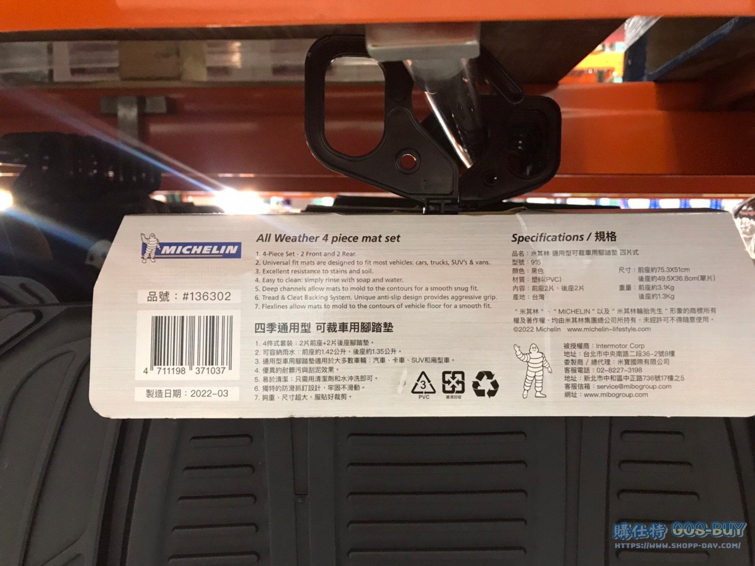 MICHELIN 通用可裁車用腳踏墊四片式 #136302