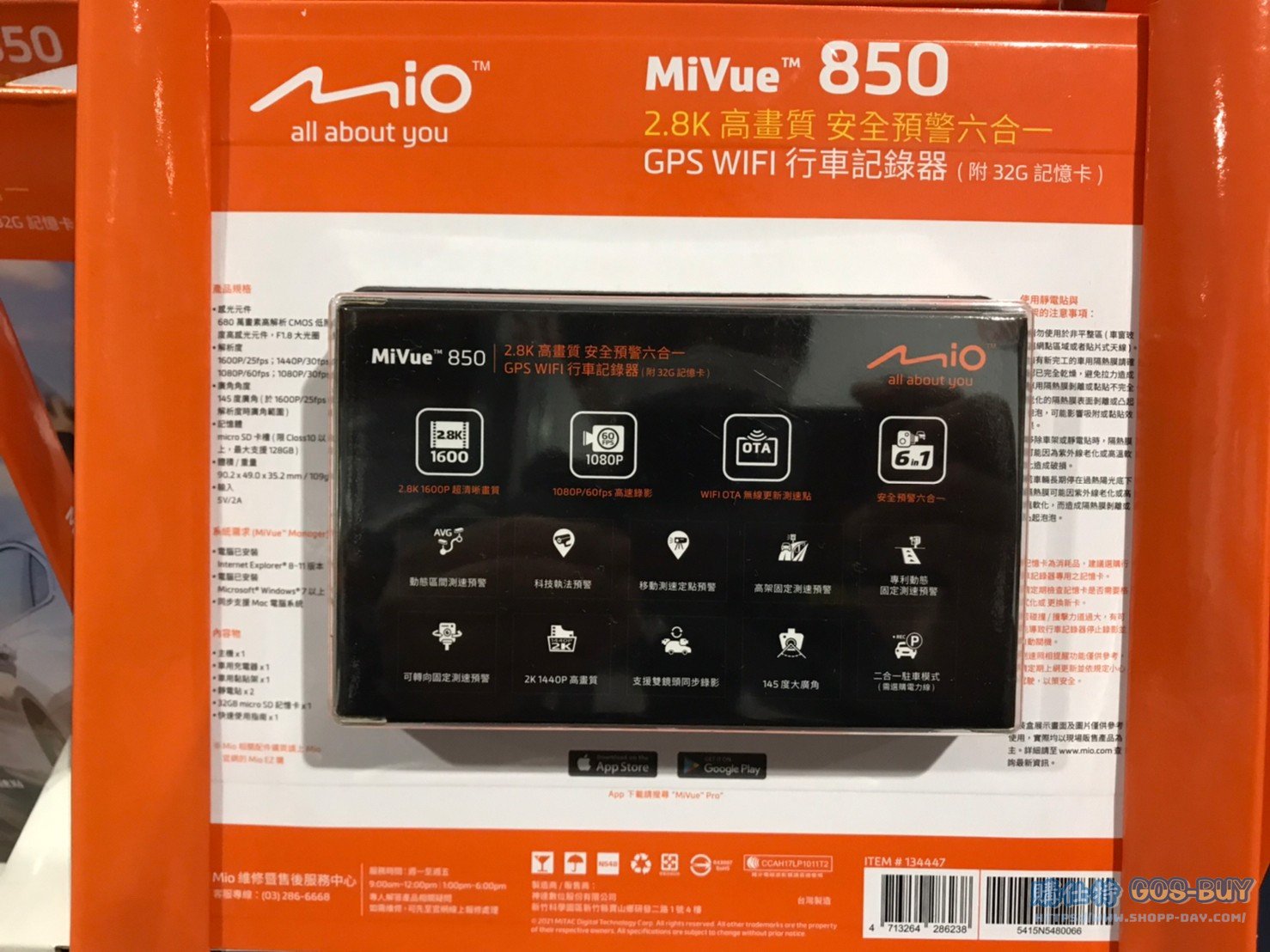家電子產品其他電子產品 MIO MIVUE 850 DASH CAMERA 2.8K高畫質行車紀錄器 內建WIFI GPS附32G卡 #134447 By 網站小編 2022 年 3 月 19 日 315 產品資訊 產品資訊 產品名稱MIO MIVUE 850 DASH CAMERA 2.8K高畫質行車紀錄器 內建WIFI GPS附32G卡 #134447價格3599產地台灣包裝規格一組(型號:MiVue 850 規格:長9.0 X 寬4.9 X 高3.5 公分)保存期限三年保固備註680萬畫素全玻璃鏡頭支碰撞與影像感應駐車模式1600P高解析度本產品為台灣製造六合一科技執法預警模式2.8高畫質低照度高感光附32G記憶卡→商品問題回報← 相關 標籤MIOWIFI行車紀錄器 前一篇文章SHARP 42吋 4K連網液晶顯示器 不含視訊盒 4T-C42CK1X #135756下一篇文章MIO MIVUE M795 CAMCORDER 機車DVR行車紀錄器1440P 2K高畫質 附32G記憶卡 #134445 網站小編https://shopp-day.com 或許你也感興趣 價格優惠資訊 2025好市多客製生日蛋糕價格表 價格優惠資訊 好市多Line社群加入方法 保健品&藥品 新甘木堅胃腸藥顆粒40包 #194496 購仕特-CosBuy 查詢排行 價格優惠資訊 2025好市多客製生日蛋糕價格表 價格優惠資訊 好市多Line社群加入方法 保健品&藥品 新甘木堅胃腸藥顆粒40包 #194496 價格優惠資訊 2025好市多會員護照-春季專案商品一覽表 價格優惠資訊 好市多美國牛肉整箱銷售價格表(2024/5/7) 裝載更多 熱門推薦 價格優惠資訊 Costco 好市多 Apple Watch 2022年版價格表 戶外用品 12*16′ TARPS 2 PACK 多功能雙色帆布2入#1600091 園藝相關 好市多花束價格 #111590 #136064 #117849 #28013 旅行用品類 SAMSONITE 22+29吋行李箱二入組#140918 戶外用品 COHO 156公升冰桶 適合露營、釣魚 #1382241 裝載更多