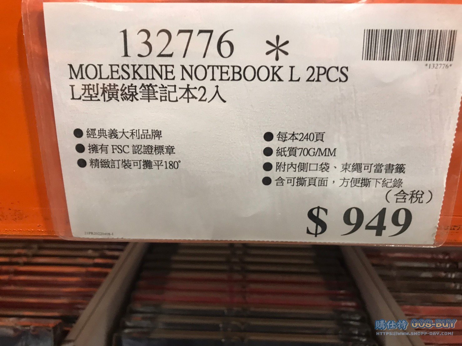 家廚房與居家生活相關 MOLESKINE NOTEBOOK L 2PCS L型橫線筆記本2入 #132776 By 網站小編 2022 年 5 月 25 日 235 產品資訊 產品資訊 產品名稱MOLESKINE NOTEBOOK L 2PCS L型橫線筆記本2入 #132776價格369產地N/A包裝規格2入保存期限N/A備註經典義大利品牌擁有FSC認證標章精緻訂裝可攤平180°每本240頁 紙質70G/MM附內側口袋、束繩可當書籤含可撕頁面,方便撕下紀錄→商品問題回報← 相關 標籤MOLESKINE記事本 前一篇文章LONG-HO BOOK END 2 SETS 龍和檔書架兩組 #133804下一篇文章REGINA 2-RINGS BINDER 6PK 立強二孔拱型夾6入R65S #129359 網站小編https://shopp-day.com 或許你也感興趣 價格優惠資訊 2025好市多客製生日蛋糕價格表 價格優惠資訊 好市多Line社群加入方法 保健品&藥品 新甘木堅胃腸藥顆粒40包 #194496 購仕特-CosBuy 查詢排行 價格優惠資訊 2025好市多客製生日蛋糕價格表 價格優惠資訊 好市多Line社群加入方法 保健品&藥品 新甘木堅胃腸藥顆粒40包 #194496 價格優惠資訊 2025好市多會員護照-春季專案商品一覽表 價格優惠資訊 好市多美國牛肉整箱銷售價格表(2024/5/7) 裝載更多 熱門推薦 廚房與居家生活相關 普拿疼伏冒熱飲20包 #84499 廚房與居家生活相關 DOMAINE DE LA BAUME 波姆酒莊金牌FITOU紅酒 #121971 廚房與居家生活相關 SIMON LI三人座牛皮沙發#1695608 廚房與居家生活相關 TAISHO大正胃腸藥顆粒52包 #126969 廚房與居家生活相關 IDEA NUOVA 摺疊椅 #1393843 裝載更多