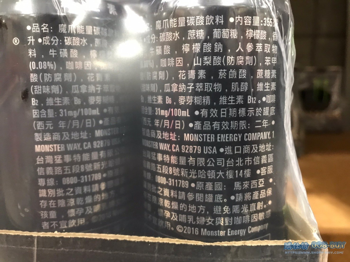 家零食&飲料 MONSTER ENERGY DRINK 魔爪碳酸能量飲料 355毫升 X 12入 #118138 By 網站小編 2022 年 5 月 1 日 408 產品資訊 產品資訊 產品名稱MONSTER ENERGY DRINK 魔爪碳酸能量飲料 355毫升 X 12入 #118138價格499產地馬來西亞包裝規格355毫升 X 12入保存期限2年備註知名能量飲料品牌可補充能量更能感受到其效果冷藏冰涼飲用風味更佳在疲倦或精神壓力增加時可加強注意力與集中力→商品問題回報← 相關 標籤能量飲魔爪 前一篇文章METHOD SHOWER CLEANER 美則浴室每日清潔劑 #111487下一篇文章SANTA MARGHERITA MERLOT紅酒 #65466 網站小編https://shopp-day.com 或許你也感興趣 價格優惠資訊 2025好市多客製生日蛋糕價格表 價格優惠資訊 好市多Line社群加入方法 保健品&藥品 新甘木堅胃腸藥顆粒40包 #194496 購仕特-CosBuy 查詢排行 價格優惠資訊 2025好市多客製生日蛋糕價格表 價格優惠資訊 好市多Line社群加入方法 保健品&藥品 新甘木堅胃腸藥顆粒40包 #194496 價格優惠資訊 2025好市多會員護照-春季專案商品一覽表 價格優惠資訊 好市多美國牛肉整箱銷售價格表(2024/5/7) 裝載更多 熱門推薦 美國零食 科克蘭葡萄乾巧克力#959987 冷藏飲品 BLUE DIAMOND 無糖原味杏仁飲1.89L #129794 西班牙零食 MR.BROWNIE 巧克力布郎尼#153753 泰國零食 A&R牛奶巧克力迷你甜筒餅乾#1744884 比利時零食 科克蘭烈酒與波特酒巧克力 #1351451 裝載更多