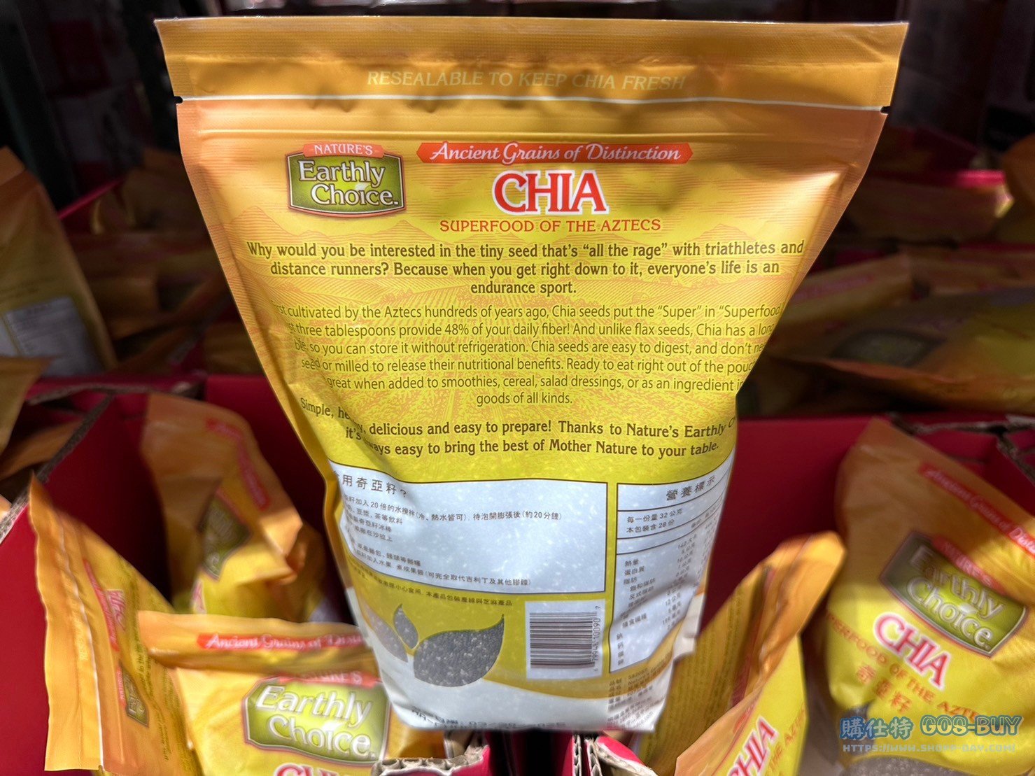家廚房與居家生活相關烘焙用品 NATURE’S奇亞籽(鼠尾草籽)#582057 By 網站小編 2021 年 11 月 8 日 408 產品資訊 產品資訊 產品名稱NATURE’S EARTHY CHOICE CHIA 奇亞籽(鼠尾草籽) 每包907公克 #582057價格299產地美國包裝規格每包907公克 每100公克 27.012元保存期限依包裝標示備註南美洲原生種超級食物,麥片、沙拉醬烘焙等、多種用途,適合添加於食品、優格。2024/2/15查價價格由245漲價為299漲價54元→商品問題回報← 相關 標籤NATURE'S奇亞籽鼠尾草籽 前一篇文章KS CANOLA OIL SPRAY 科克蘭噴霧式芥花油 397公克X2入 #1293996下一篇文章東北酸白菜鍋 #129666 網站小編https://shopp-day.com 或許你也感興趣 價格優惠資訊 2025好市多客製生日蛋糕價格表 價格優惠資訊 好市多Line社群加入方法 保健品&藥品 新甘木堅胃腸藥顆粒40包 #194496 購仕特-CosBuy 查詢排行 價格優惠資訊 2025好市多客製生日蛋糕價格表 價格優惠資訊 好市多Line社群加入方法 保健品&藥品 新甘木堅胃腸藥顆粒40包 #194496 價格優惠資訊 2025好市多會員護照-春季專案商品一覽表 價格優惠資訊 好市多美國牛肉整箱銷售價格表(2024/5/7) 裝載更多 熱門推薦 廚房與居家生活相關 OVEN PAPER 食物烹調專用紙 30公分X50公尺/2入 #111887 廚房與居家生活相關 ARM & HAMMER(鐵鎚牌)多功能小蘇打粉 #488431 廚房與居家生活相關 PYREX單耳玻璃量杯三件組#1615903 穀物類 台北六張犁 NUT BUN 養生堅果饅頭15PC #34751 廚房與居家生活相關 科克蘭食物烹調專用紙 #1323118 裝載更多