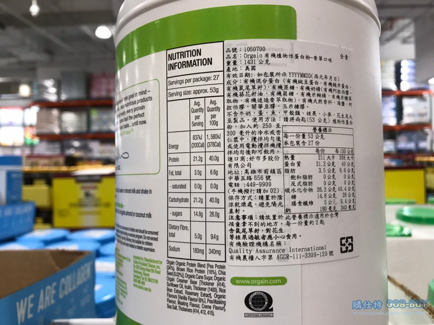 家運動戶外用品健身用品 ORGAIN有機植物性蛋白粉 香草口味1.43公斤 #1050700 By 網站小編 2022 年 3 月 12 日 778 產品資訊 產品資訊 產品名稱ORGAIN ORGANIC PROTEIN 有機植物性蛋白粉 香草口味1.43公斤 #1050700價格1099產地美國包裝規格1.43KG保存期限依包裝所示備註植物性蛋白每份含糖15G脂肪3.5G內含有機混合植物性蛋白不含麩質蛋白質為肌肉合成來源之一可用於肌肉生長任何時可皆可引用吸收全素可食2022/9/30查價價格由999漲價為1099漲價100元→商品問題回報← 相關 標籤ORGAIN乳清健身素食香草高蛋白 前一篇文章PAMP GOLD BULLION 1KG 999.9 壹公斤黃金條塊 瑞士原裝 #117625下一篇文章金莎巧克力#14384 網站小編https://shopp-day.com 或許你也感興趣 價格優惠資訊 2025好市多客製生日蛋糕價格表 價格優惠資訊 好市多Line社群加入方法 保健品&藥品 新甘木堅胃腸藥顆粒40包 #194496 購仕特-CosBuy 查詢排行 價格優惠資訊 2025好市多客製生日蛋糕價格表 價格優惠資訊 好市多Line社群加入方法 保健品&藥品 新甘木堅胃腸藥顆粒40包 #194496 價格優惠資訊 2025好市多會員護照-春季專案商品一覽表 價格優惠資訊 好市多美國牛肉整箱銷售價格表(2024/5/7) 裝載更多 熱門推薦 戶外用品 12*16′ TARPS 2 PACK 多功能雙色帆布2入#1600091 園藝相關 好市多花束價格 #111590 #136064 #117849 #28013 戶外用品 COHO 156公升冰桶 適合露營、釣魚 #1382241 旅行用品類 SAMSONITE 22+29吋行李箱二入組#140918 汽機車用品 MICHELIN 米其林18吋輪胎PRIMACY SUV+輪胎 235/60 R18 103V #136585 裝載更多