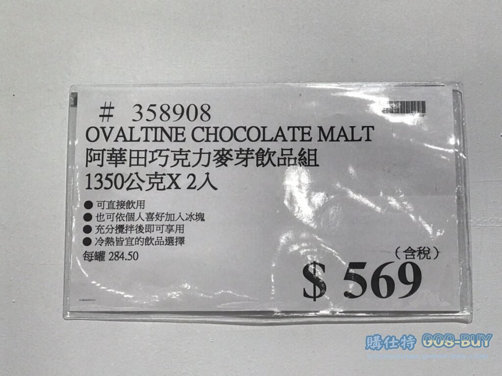 家食品麵包類即溶現泡類 阿華田巧克力麥芽飲品組#358908 By 網站小編 2022 年 2 月 22 日 411 產品資訊 產品資訊 產品名稱OVALTINE CHOCOLATE MALT 阿華田巧克力麥芽飲品組 1350公克X2入 #358908價格569產地泰國包裝規格1350公克X2入保存期限2年備註可直接飲用也可依個人喜好加入冰塊充分攪拌後即可飲用冷熱皆值得飲品選擇2022/5/15查價價格由529漲價為569 漲價40元→商品問題回報← 相關 標籤阿華田麥芽 前一篇文章維力大乾麵老北京炸醬麵#133362下一篇文章SAPUTO乾酪條 #7068950 網站小編https://shopp-day.com 或許你也感興趣 價格優惠資訊 2025好市多客製生日蛋糕價格表 價格優惠資訊 好市多Line社群加入方法 保健品&藥品 新甘木堅胃腸藥顆粒40包 #194496 購仕特-CosBuy 查詢排行 價格優惠資訊 2025好市多客製生日蛋糕價格表 價格優惠資訊 好市多Line社群加入方法 保健品&藥品 新甘木堅胃腸藥顆粒40包 #194496 價格優惠資訊 2025好市多會員護照-春季專案商品一覽表 價格優惠資訊 好市多美國牛肉整箱銷售價格表(2024/5/7) 裝載更多 熱門推薦 價格優惠資訊 2025好市多客製生日蛋糕價格表 價格優惠資訊 好市多美國牛肉整箱銷售價格表(2024/5/7) 價格優惠資訊 好市多日本和牛價格表 2024.4.29更新 冷藏食品 美國特選無骨牛小排火鍋片#25737 冷藏食品 舊振南英式馬芬米福堡#143387 裝載更多