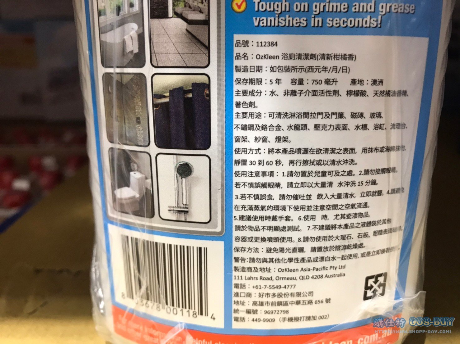 家廚房與居家生活相關 OZKLEEN浴廁淋浴清潔劑 750毫升X3入 #112384 By 網站小編 2022 年 1 月 11 日 230 產品資訊 產品資訊 產品名稱OZKLEEN BATHROOM CLEANER 浴廁淋浴清潔劑 750毫升X3入 #112384價格289產地澳洲包裝規格750毫升X3入保存期限五年備註浴室及廁所皆可使用易清洗,輕鬆打掃更省力不含氯、不含磷酸鹽清洗後散發清新柑橘香可清潔淋浴間拉門、浴簾水龍頭、水槽、浴缸、燈架能恢復磁磚玻璃不繡鋼光澤有效去除污垢油脂→商品問題回報← 相關 標籤OZKLEEN廁所清潔劑浴室清潔劑 前一篇文章PLUSH SNOWMAN PALS 雪人裝飾玩偶 2入組 #1486936下一篇文章GNOME FAMILY 3PK SET 耶誕小矮人裝飾3入組 #1487665 網站小編https://shopp-day.com 或許你也感興趣 價格優惠資訊 2025好市多客製生日蛋糕價格表 價格優惠資訊 好市多Line社群加入方法 保健品&藥品 新甘木堅胃腸藥顆粒40包 #194496 購仕特-CosBuy 查詢排行 價格優惠資訊 2025好市多客製生日蛋糕價格表 價格優惠資訊 好市多Line社群加入方法 保健品&藥品 新甘木堅胃腸藥顆粒40包 #194496 價格優惠資訊 2025好市多會員護照-春季專案商品一覽表 價格優惠資訊 好市多美國牛肉整箱銷售價格表(2024/5/7) 裝載更多 熱門推薦 廚房與居家生活相關 普拿疼伏冒熱飲20包 #84499 廚房與居家生活相關 DOMAINE DE LA BAUME 波姆酒莊金牌FITOU紅酒 #121971 廚房與居家生活相關 SIMON LI三人座牛皮沙發#1695608 廚房與居家生活相關 TAISHO大正胃腸藥顆粒52包 #126969 廚房與居家生活相關 IDEA NUOVA 摺疊椅 #1393843 裝載更多