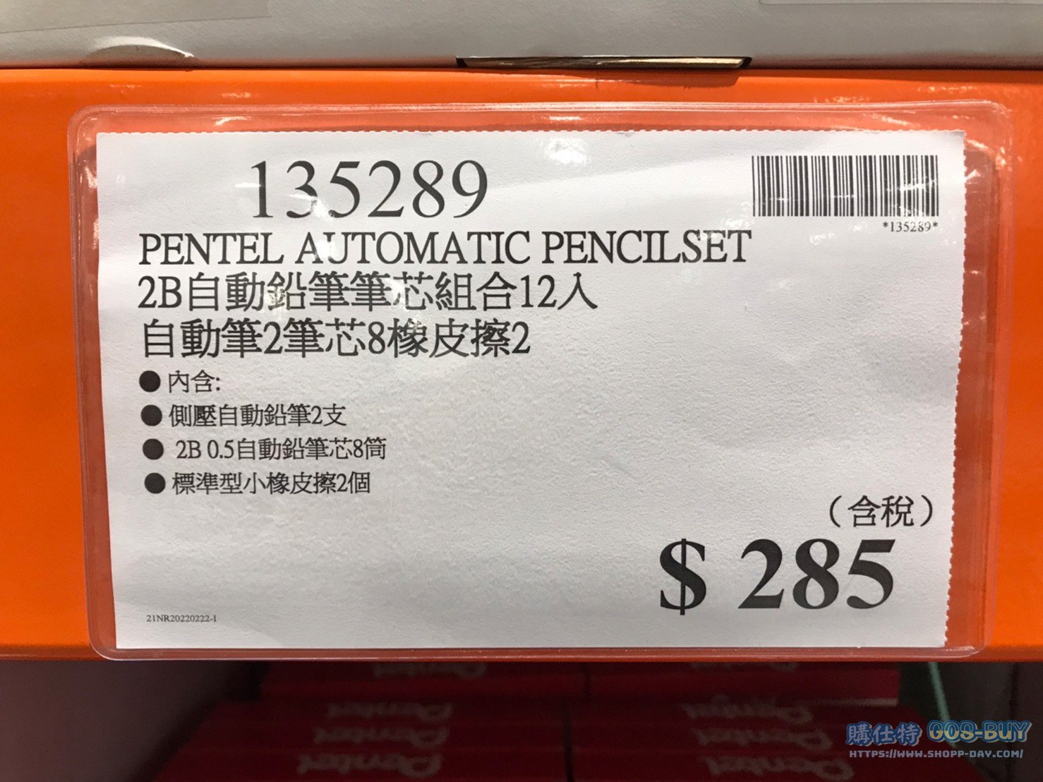 家廚房與居家生活相關 PENTEL AUTOMATIC PENCILSET 2B自動鉛筆筆芯組合12入 #135289 By 網站小編 2022 年 5 月 23 日 210 產品資訊 產品資訊 產品名稱PENTEL AUTOMATIC PENCILSET 2B自動鉛筆筆芯組合12入 自動筆2 筆芯8 橡皮擦2 #135289價格285產地依包裝所示包裝規格12入(自動筆2 筆芯8 橡皮擦2)保存期限N/A備註內含:側壓自動鉛筆2支2B 0.5 自動鉛筆筆芯8筒標準型小橡皮擦2個→商品問題回報← 相關 標籤PENTEL擦子橡皮擦自動筆 前一篇文章MITSUBISHI UNI 0.38 PENS 三菱0.38超細藍黑色鋼珠筆 #46962下一篇文章PLUS 智慧滾輪修正帶長度六公尺#126691 網站小編https://shopp-day.com 或許你也感興趣 價格優惠資訊 2025好市多客製生日蛋糕價格表 價格優惠資訊 好市多Line社群加入方法 保健品&藥品 新甘木堅胃腸藥顆粒40包 #194496 購仕特-CosBuy 查詢排行 價格優惠資訊 2025好市多客製生日蛋糕價格表 價格優惠資訊 好市多Line社群加入方法 保健品&藥品 新甘木堅胃腸藥顆粒40包 #194496 價格優惠資訊 2025好市多會員護照-春季專案商品一覽表 價格優惠資訊 好市多美國牛肉整箱銷售價格表(2024/5/7) 裝載更多 熱門推薦 廚房與居家生活相關 普拿疼伏冒熱飲20包 #84499 廚房與居家生活相關 DOMAINE DE LA BAUME 波姆酒莊金牌FITOU紅酒 #121971 廚房與居家生活相關 SIMON LI三人座牛皮沙發#1695608 廚房與居家生活相關 TAISHO大正胃腸藥顆粒52包 #126969 廚房與居家生活相關 IDEA NUOVA 摺疊椅 #1393843 裝載更多
