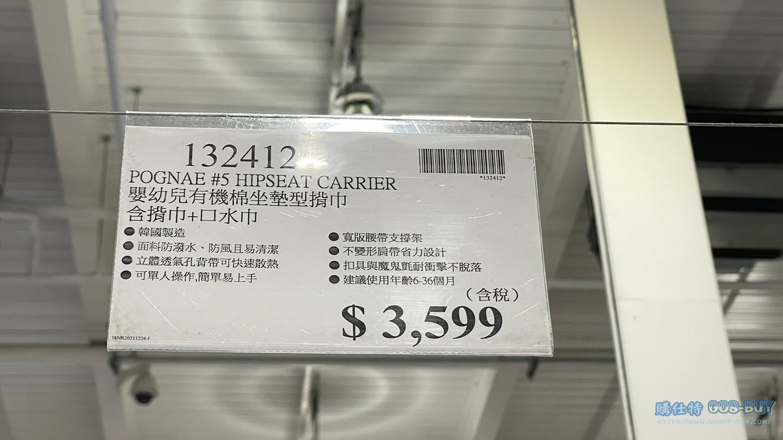 家服飾類配件類兒童 POGNAE #5 HIPSEAT CARRIER 嬰幼兒有機棉坐墊型揹巾 含揹巾+口水巾 #132412 By 網站小編 2022 年 3 月 4 日 276 產品資訊 產品資訊 產品名稱POGNAE #5 HIPSEAT CARRIER 嬰幼兒有機棉坐墊型揹巾 含揹巾+口水巾 #132412價格3599產地韓國包裝規格一組/42吋 (揹巾+口水巾)保存期限N/A備註面料防潑水,防風且易清潔立體透氣孔背帶可快速散熱可單人操作,簡單易上手寬版腰帶支撐不變形肩帶省力設計扣具與魔鬼氈耐衝擊不脫落建議使用年齡6-36個月有東京輝、牛仔藍等兩款可選→商品問題回報← 相關 標籤口水巾嬰兒外出嬰兒用品揹巾 前一篇文章DISNEY ROUND BLANKET AND RATTLE SET 240 GSM 幼兒毯安撫手搖鈴兩件組 #128962下一篇文章RUFFLES SPICY CRAB CHIPS 波樂香辣炒蟹味厚切洋芋片 580公克 #123854 網站小編https://shopp-day.com 或許你也感興趣 價格優惠資訊 2025好市多客製生日蛋糕價格表 價格優惠資訊 好市多Line社群加入方法 保健品&藥品 新甘木堅胃腸藥顆粒40包 #194496 購仕特-CosBuy 查詢排行 價格優惠資訊 2025好市多客製生日蛋糕價格表 價格優惠資訊 好市多Line社群加入方法 保健品&藥品 新甘木堅胃腸藥顆粒40包 #194496 價格優惠資訊 2025好市多會員護照-春季專案商品一覽表 價格優惠資訊 好市多美國牛肉整箱銷售價格表(2024/5/7) 裝載更多 熱門推薦 廚房與居家生活相關 普拿疼伏冒熱飲20包 #84499 廚房與居家生活相關 DOMAINE DE LA BAUME 波姆酒莊金牌FITOU紅酒 #121971 廚房與居家生活相關 SIMON LI三人座牛皮沙發#1695608 廚房與居家生活相關 TAISHO大正胃腸藥顆粒52包 #126969 廚房與居家生活相關 IDEA NUOVA 摺疊椅 #1393843 裝載更多