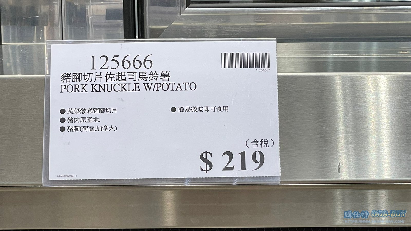 家食品麵包類冷藏食品 豬腳切片佐起司馬鈴薯 #125666 By 網站小編 2022 年 3 月 10 日 331 產品資訊 產品資訊 產品名稱PORK KNUCKLE W/POTATO 豬腳切片佐起司馬鈴薯 #125666價格219產地台灣包裝規格依包裝所示保存期限依包裝所示備註蔬菜燉煮豬腳切片豬肉原產地:豬腳(荷蘭、加拿大)簡易微波即可食用→商品問題回報← 相關 標籤豬腳起司馬鈴薯 前一篇文章DONGWON PORRIDGE ABALONE DONGWON韓國鮑魚多穀粥285公克4包入 #500198下一篇文章美式大烤雞#112179 網站小編https://shopp-day.com 或許你也感興趣 價格優惠資訊 2025好市多客製生日蛋糕價格表 價格優惠資訊 好市多Line社群加入方法 保健品&藥品 新甘木堅胃腸藥顆粒40包 #194496 購仕特-CosBuy 查詢排行 價格優惠資訊 2025好市多客製生日蛋糕價格表 價格優惠資訊 好市多Line社群加入方法 保健品&藥品 新甘木堅胃腸藥顆粒40包 #194496 價格優惠資訊 2025好市多會員護照-春季專案商品一覽表 價格優惠資訊 好市多美國牛肉整箱銷售價格表(2024/5/7) 裝載更多 熱門推薦 價格優惠資訊 2025好市多客製生日蛋糕價格表 價格優惠資訊 好市多美國牛肉整箱銷售價格表(2024/5/7) 價格優惠資訊 好市多日本和牛價格表 2024.4.29更新 冷藏食品 美國特選無骨牛小排火鍋片#25737 冷藏食品 舊振南英式馬芬米福堡#143387 裝載更多
