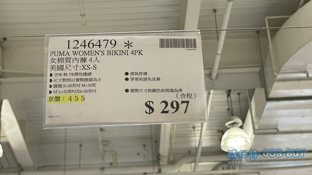 PUMA WOMEN’S BIKINI 4PK 女棉質內褲 4入 美國尺寸:XS-S #1246479