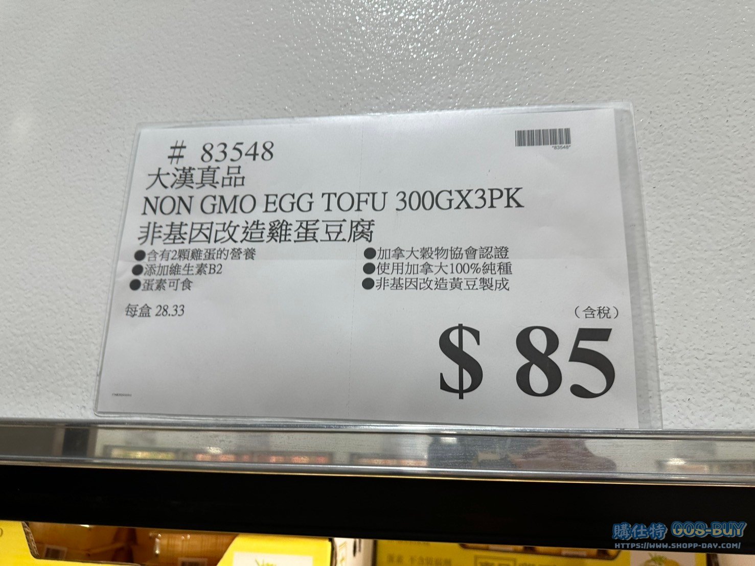 家食品麵包類冷藏食品 真品非基因改造雞蛋豆腐#83548 By 網站小編 2022 年 6 月 21 日 880 產品資訊 產品資訊 產品名稱 PURE真品 NON GMO EGG TOFU 300G X 3 PK 非基因改造雞蛋豆腐 #83548 價格 85 產地 台灣 包裝規格 300G X 3入 保存期限 40天 備註 含有2顆雞蛋的營養添加維生素B2適合煎煮炒炸蛋素可食加拿大穀物協會認證使用加拿大100%純種非基因改造黃豆製成2025/2/17查價價格由65漲價至85元漲價20元 →商品問題回報← 相關 標籤真品豆腐雞蛋 前一篇文章MACKIE’S蘇格蘭經典牛奶冰淇淋2公升#108940下一篇文章真品非基因改造細豆腐#69536 網站小編https://shopp-day.com 或許你也感興趣 價格優惠資訊 2025好市多客製生日蛋糕價格表 價格優惠資訊 好市多Line社群加入方法 保健品&藥品 新甘木堅胃腸藥顆粒40包 #194496 購仕特-CosBuy 查詢排行 價格優惠資訊 2025好市多客製生日蛋糕價格表 價格優惠資訊 好市多Line社群加入方法 保健品&藥品 新甘木堅胃腸藥顆粒40包 #194496 價格優惠資訊 2025好市多會員護照-春季專案商品一覽表 價格優惠資訊 好市多美國牛肉整箱銷售價格表(2024/5/7) 裝載更多 熱門推薦 價格優惠資訊 2025好市多客製生日蛋糕價格表 價格優惠資訊 好市多美國牛肉整箱銷售價格表(2024/5/7) 價格優惠資訊 好市多日本和牛價格表 2024.4.29更新 冷藏食品 美國特選無骨牛小排火鍋片#25737 冷藏食品 舊振南英式馬芬米福堡#143387 裝載更多