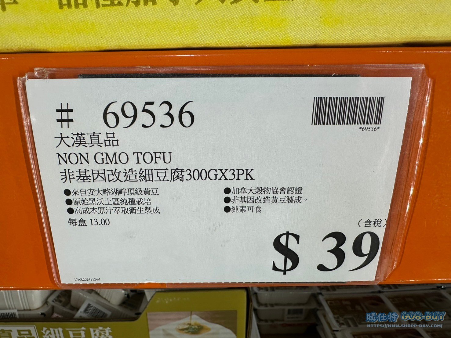 家食品麵包類冷藏食品 真品非基因改造細豆腐#69536 By 網站小編 2022 年 6 月 21 日 625 產品資訊 產品資訊 產品名稱 PURE真品 NON GMO TOFU 非基因改造細豆腐300G X 3PK #69536 價格 39 產地 台灣 包裝規格 300GX3PK 保存期限 40天 備註 來自安大略湖畔頂級黃豆原始黑沃土區純種栽培高成本原汁萃取衛生製成瞬間殺菌保留黃豆精華加拿大穀物協會認證使用加拿大100%純種非基因改造黃豆製成 純素可食2025/2/17查價價格由45降價為39降價6元 →商品問題回報← 相關 標籤真品細豆腐豆腐 前一篇文章真品非基因改造雞蛋豆腐#83548下一篇文章真品非基因改造板豆腐#126249 網站小編https://shopp-day.com 或許你也感興趣 價格優惠資訊 2025好市多客製生日蛋糕價格表 價格優惠資訊 好市多Line社群加入方法 保健品&藥品 新甘木堅胃腸藥顆粒40包 #194496 購仕特-CosBuy 查詢排行 價格優惠資訊 2025好市多客製生日蛋糕價格表 價格優惠資訊 好市多Line社群加入方法 保健品&藥品 新甘木堅胃腸藥顆粒40包 #194496 價格優惠資訊 2025好市多會員護照-春季專案商品一覽表 價格優惠資訊 好市多美國牛肉整箱銷售價格表(2024/5/7) 裝載更多 熱門推薦 價格優惠資訊 2025好市多客製生日蛋糕價格表 價格優惠資訊 好市多美國牛肉整箱銷售價格表(2024/5/7) 價格優惠資訊 好市多日本和牛價格表 2024.4.29更新 冷藏食品 美國特選無骨牛小排火鍋片#25737 冷藏食品 舊振南英式馬芬米福堡#143387 裝載更多