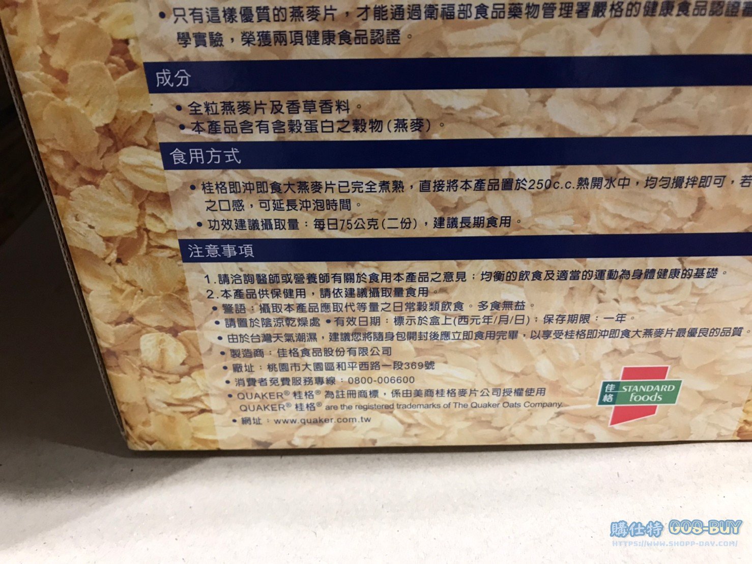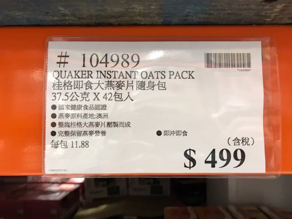 家食品麵包類即溶現泡類 桂格即食大燕麥片隨身包#104989 By 網站小編 2022 年 2 月 2 日 309 產品資訊 產品資訊 產品名稱QUAKER INSTANT OATS PACK 桂格即食大燕麥片隨身包 37.5公克X24包 #104989價格499產地台灣包裝規格37.5公克X24包保存期限依包裝所示備註國家健康食品認證燕麥原產地:澳洲整塊桂格大燕麥片壓製而成完整保留燕麥營養 即沖即食 →商品問題回報← 相關 標籤Q桂格燕麥隨身包 前一篇文章QUAKER桂格有機大燕麥片 #116958下一篇文章BIBIGO冷凍韓式雜菜拌粉絲 295公克X4入 #132478 網站小編https://shopp-day.com 或許你也感興趣 價格優惠資訊 2025好市多客製生日蛋糕價格表 價格優惠資訊 好市多Line社群加入方法 保健品&藥品 新甘木堅胃腸藥顆粒40包 #194496 購仕特-CosBuy 查詢排行 價格優惠資訊 2025好市多客製生日蛋糕價格表 價格優惠資訊 好市多Line社群加入方法 保健品&藥品 新甘木堅胃腸藥顆粒40包 #194496 價格優惠資訊 2025好市多會員護照-春季專案商品一覽表 價格優惠資訊 好市多美國牛肉整箱銷售價格表(2024/5/7) 裝載更多 熱門推薦 價格優惠資訊 2025好市多客製生日蛋糕價格表 價格優惠資訊 好市多美國牛肉整箱銷售價格表(2024/5/7) 價格優惠資訊 好市多日本和牛價格表 2024.4.29更新 冷藏食品 美國特選無骨牛小排火鍋片#25737 冷藏食品 舊振南英式馬芬米福堡#143387 裝載更多