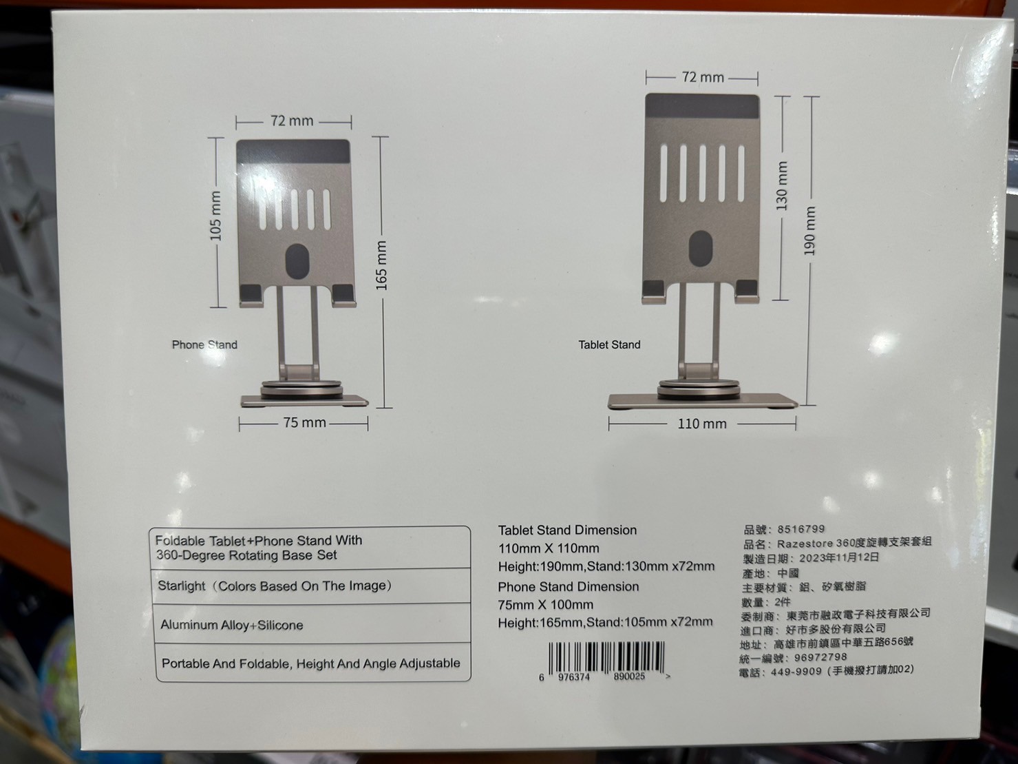 家廚房與居家生活相關 RAZESTORE 360度旋轉支架組#8516799 By 網站小編 2023 年 12 月 19 日 691 產品資訊 產品資訊 產品名稱RAZESTORE IPHONE&IPAD STAND COMBO 360度旋轉支架#8516799價格499產地中國包裝規格2入保存期限NA備註提供兩色選擇,止滑條設計穩固不滑落。摺疊設計,方便攜帶。360度旋轉底座,多角度調整可拉伸高度。→商品問題回報← 相關 標籤RAZESTORE平板支架手機支架支架 前一篇文章IRIS無線充電檯燈#136428下一篇文章4.75吋圓形瓷碗8件組#141465 網站小編https://shopp-day.com 或許你也感興趣 價格優惠資訊 2025好市多客製生日蛋糕價格表 價格優惠資訊 好市多Line社群加入方法 保健品&藥品 新甘木堅胃腸藥顆粒40包 #194496 購仕特-CosBuy 查詢排行 價格優惠資訊 2025好市多客製生日蛋糕價格表 價格優惠資訊 好市多Line社群加入方法 保健品&藥品 新甘木堅胃腸藥顆粒40包 #194496 價格優惠資訊 2025好市多會員護照-春季專案商品一覽表 價格優惠資訊 好市多美國牛肉整箱銷售價格表(2024/5/7) 裝載更多 熱門推薦 廚房與居家生活相關 普拿疼伏冒熱飲20包 #84499 廚房與居家生活相關 DOMAINE DE LA BAUME 波姆酒莊金牌FITOU紅酒 #121971 廚房與居家生活相關 SIMON LI三人座牛皮沙發#1695608 廚房與居家生活相關 TAISHO大正胃腸藥顆粒52包 #126969 廚房與居家生活相關 IDEA NUOVA 摺疊椅 #1393843 裝載更多