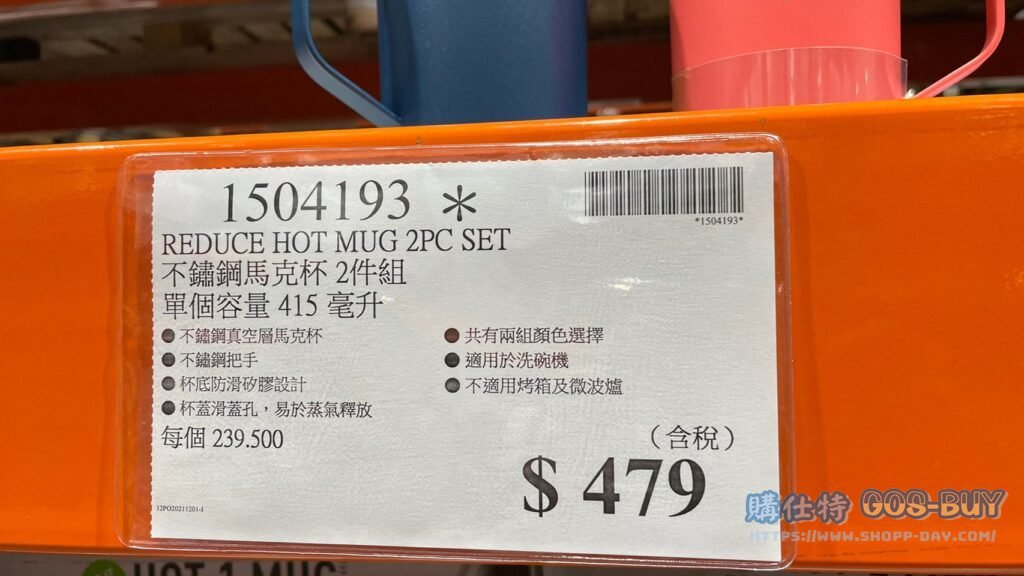 家廚房與居家生活相關 REDUCE HOT MUG 2PC SET 不鏽鋼馬克杯 2件組 單個容量415毫升 #1504193 By 網站小編 2021 年 12 月 22 日 481 產品資訊 產品資訊 產品名稱REDUCE HOT MUG 2PC SET 不鏽鋼馬克杯 2件組 單個容量415毫升 #1504193價格479產地N/A包裝規格兩入 415毫升保存期限依包裝所示備註 →商品問題回報← 相關 標籤不鏽鋼馬克杯 前一篇文章PYREX SNOOPY FOOD STORAGE PYREX玻璃密封保鮮盒 含蓋8件組 #130955下一篇文章SANTECO K2 THERMAL BOTTLE 隨手保溫瓶兩件組 容量:500毫升/件 #133472 網站小編https://shopp-day.com 或許你也感興趣 價格優惠資訊 2025好市多客製生日蛋糕價格表 價格優惠資訊 好市多Line社群加入方法 保健品&藥品 新甘木堅胃腸藥顆粒40包 #194496 購仕特-CosBuy 查詢排行 價格優惠資訊 2025好市多客製生日蛋糕價格表 價格優惠資訊 好市多Line社群加入方法 保健品&藥品 新甘木堅胃腸藥顆粒40包 #194496 價格優惠資訊 2025好市多會員護照-春季專案商品一覽表 價格優惠資訊 好市多美國牛肉整箱銷售價格表(2024/5/7) 裝載更多 熱門推薦 廚房與居家生活相關 普拿疼伏冒熱飲20包 #84499 廚房與居家生活相關 DOMAINE DE LA BAUME 波姆酒莊金牌FITOU紅酒 #121971 廚房與居家生活相關 SIMON LI三人座牛皮沙發#1695608 廚房與居家生活相關 TAISHO大正胃腸藥顆粒52包 #126969 廚房與居家生活相關 IDEA NUOVA 摺疊椅 #1393843 裝載更多