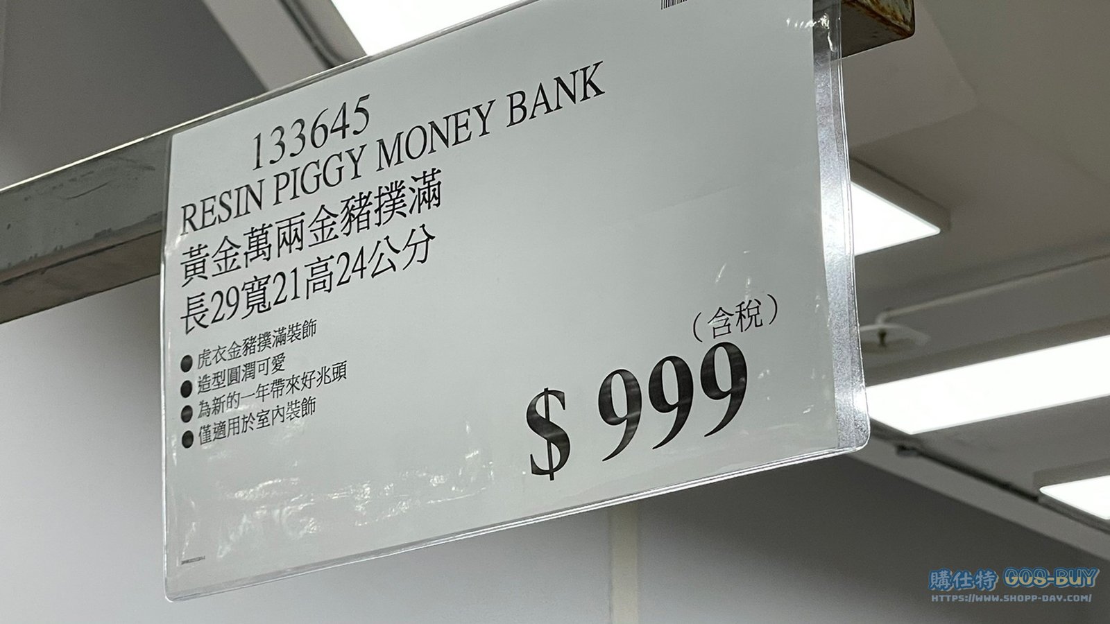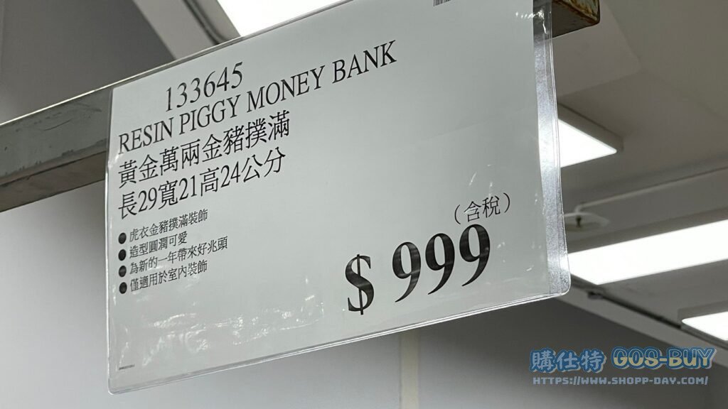 家廚房與居家生活相關 RESIN PIGGY MONEY BANK 黃金萬兩金豬撲滿 長29寬21高24公分 #133645 By 網站小編 2021 年 12 月 21 日 368 產品資訊 產品資訊 產品名稱RESIN PIGGY MONEY BANK 黃金萬兩金豬撲滿 長29寬21高24公分 #133645價格999產地中國包裝規格 一入 長29寬21高24公分保存期限依包裝所示備註 →商品問題回報← 相關 標籤存錢筒撲滿豬過年過年商品 前一篇文章RESIN INGOT MONEY BANK 招財進寶金錢袋撲滿 長35寬35高38公分 #1487539下一篇文章台北六張犁 NUT BUN 養生堅果饅頭15PC #34751 網站小編https://shopp-day.com 或許你也感興趣 價格優惠資訊 2025好市多客製生日蛋糕價格表 價格優惠資訊 好市多Line社群加入方法 保健品&藥品 新甘木堅胃腸藥顆粒40包 #194496 購仕特-CosBuy 查詢排行 價格優惠資訊 2025好市多客製生日蛋糕價格表 價格優惠資訊 好市多Line社群加入方法 保健品&藥品 新甘木堅胃腸藥顆粒40包 #194496 價格優惠資訊 2025好市多會員護照-春季專案商品一覽表 價格優惠資訊 好市多美國牛肉整箱銷售價格表(2024/5/7) 裝載更多 熱門推薦 廚房與居家生活相關 普拿疼伏冒熱飲20包 #84499 廚房與居家生活相關 DOMAINE DE LA BAUME 波姆酒莊金牌FITOU紅酒 #121971 廚房與居家生活相關 SIMON LI三人座牛皮沙發#1695608 廚房與居家生活相關 TAISHO大正胃腸藥顆粒52包 #126969 廚房與居家生活相關 IDEA NUOVA 摺疊椅 #1393843 裝載更多
