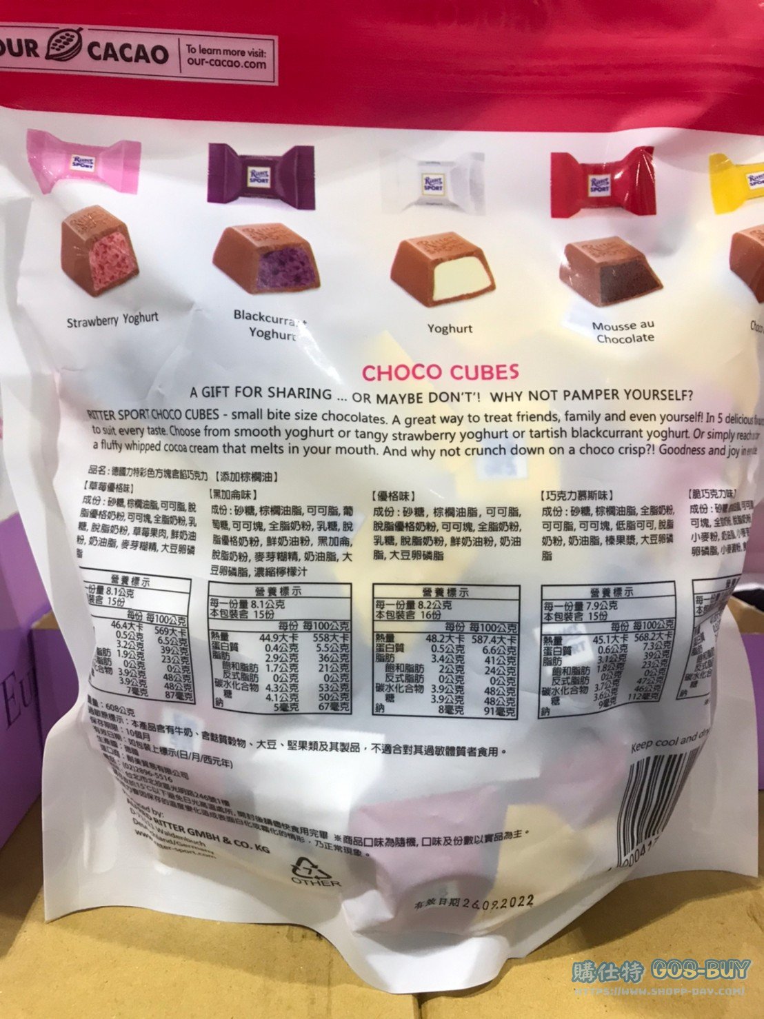 家零食&飲料德國零食 RITTER SPORT CUBE CHOCO 力特彩色方塊含餡巧克力608公克 #131468 By 網站小編 2022 年 2 月 25 日 285 產品資訊 產品資訊 產品名稱RITTER SPORT CUBE CHOCO 力特彩色方塊含餡巧克力608公克 #131468價格379產地德國包裝規格608公克保存期限依包裝所示備註內有五種口味優格、黑加崙、草莓優格脆巧克力味、巧克力慕斯獨立小包裝,易於攜帶分享→商品問題回報← 相關 標籤巧克力綜合巧克力 前一篇文章HSIN LAI YUAN SOUR CABBAGE 新來源東北酸白菜 700克4入 #92800下一篇文章ST.MICHEL GALETTES 海鹽奶油餅乾 每罐450公克 #125130 網站小編https://shopp-day.com 或許你也感興趣 價格優惠資訊 2025好市多客製生日蛋糕價格表 價格優惠資訊 好市多Line社群加入方法 保健品&藥品 新甘木堅胃腸藥顆粒40包 #194496 購仕特-CosBuy 查詢排行 價格優惠資訊 2025好市多客製生日蛋糕價格表 價格優惠資訊 好市多Line社群加入方法 保健品&藥品 新甘木堅胃腸藥顆粒40包 #194496 價格優惠資訊 2025好市多會員護照-春季專案商品一覽表 價格優惠資訊 好市多美國牛肉整箱銷售價格表(2024/5/7) 裝載更多 熱門推薦 美國零食 科克蘭葡萄乾巧克力#959987 冷藏飲品 BLUE DIAMOND 無糖原味杏仁飲1.89L #129794 西班牙零食 MR.BROWNIE 巧克力布郎尼#153753 泰國零食 A&R牛奶巧克力迷你甜筒餅乾#1744884 比利時零食 科克蘭烈酒與波特酒巧克力 #1351451 裝載更多