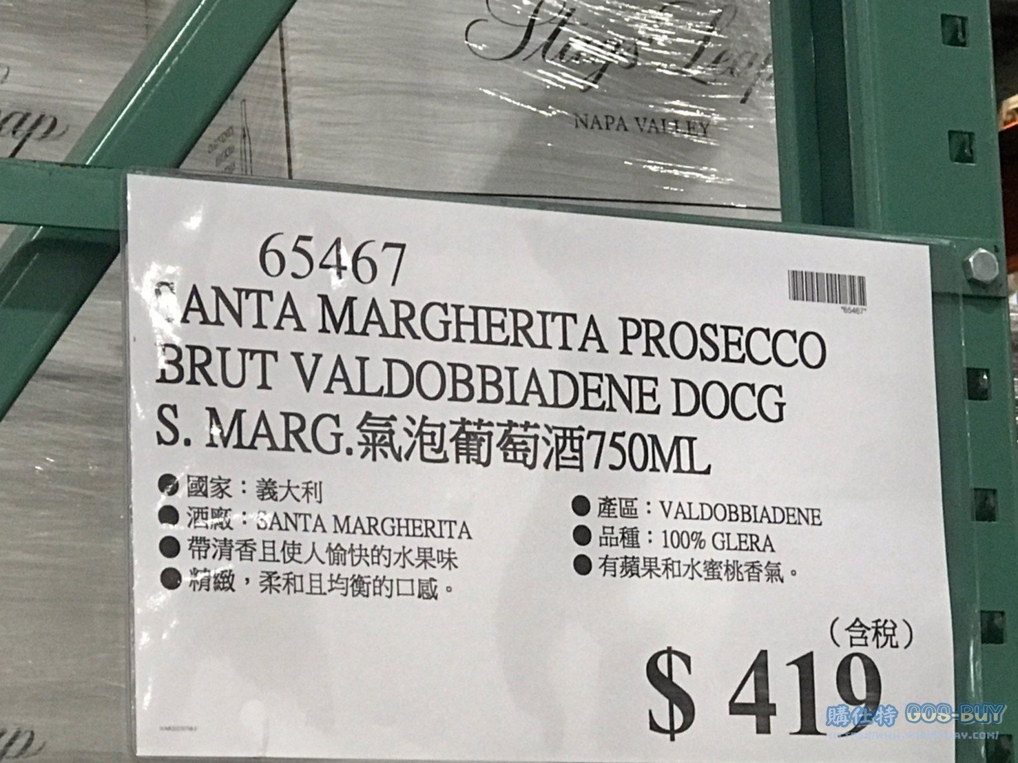 家酒品類氣泡酒 SANTA MARGHERITA PROSECCO 氣泡葡萄酒750ML #65467 By 網站小編 2022 年 5 月 24 日 796 產品資訊 產品資訊 產品名稱SANTA MARGHERITA PROSECCO BRUT VALDOBBIADENE DOCG S. MARG.氣泡葡萄酒750ML #65467價格419產地義大利包裝規格750ML保存期限依包裝所示備註國家:義大利產區:VALDOBBIADENE酒廠:SANTA MARGHERITA品種:PROSECCO帶清香且使人愉悅的水果味有蘋果和水蜜桃香氣精緻、柔和且均衡的口感。2022/8/12查價價格由389漲價為419漲價30元→商品問題回報← 相關 標籤白葡萄酒葡萄葡萄酒 前一篇文章MASTERBUILT CHARCOAL GRILL 戶外木炭烤肉爐 #1900677下一篇文章SAMSUNG FRIDGE 795L HOMEBAR對開冰箱795公升 #133630 網站小編https://shopp-day.com 或許你也感興趣 價格優惠資訊 2025好市多客製生日蛋糕價格表 價格優惠資訊 好市多Line社群加入方法 保健品&藥品 新甘木堅胃腸藥顆粒40包 #194496 購仕特-CosBuy 查詢排行 價格優惠資訊 2025好市多客製生日蛋糕價格表 價格優惠資訊 好市多Line社群加入方法 保健品&藥品 新甘木堅胃腸藥顆粒40包 #194496 價格優惠資訊 2025好市多會員護照-春季專案商品一覽表 價格優惠資訊 好市多美國牛肉整箱銷售價格表(2024/5/7) 裝載更多 熱門推薦 其他酒類 日本芒果梅酒#143982 威士忌 KAVALAN噶瑪蘭調酒師精選威士忌#129555 葡萄酒 1865 卡貝納蘇維翁紅酒750ML 2019/2020 #113198 葡萄酒 波姆酒莊琥珀金牌紅酒#125623 威士忌 KAVAKAN 噶瑪蘭威士忌酒展商品一覽表 裝載更多