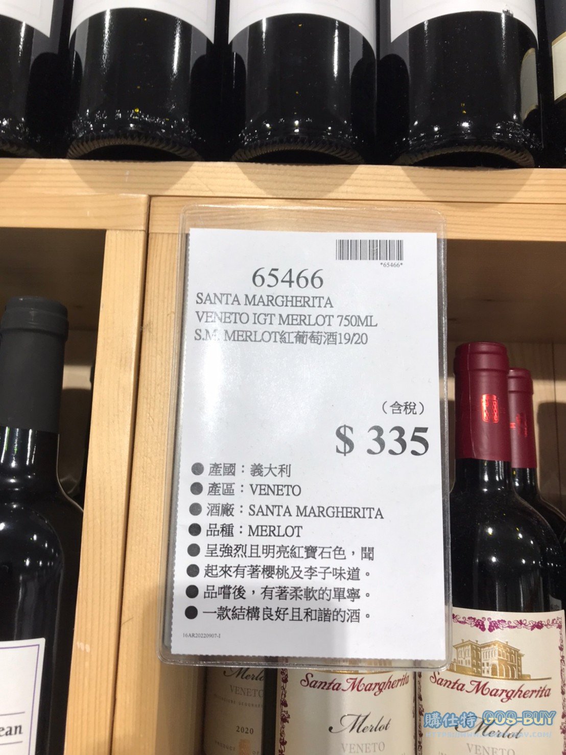 家酒品類葡萄酒 SANTA MARGHERITA MERLOT紅酒 #65466 By 網站小編 2022 年 5 月 1 日 888 產品資訊 產品資訊 產品名稱SANTA MARGHERITA VENETO IGT MERLOT 750ML S.M. MERLOT紅酒 #65466價格335產地義大利包裝規格750ML保存期限依包裝所示備註產國:義大利產區:SANTA MARGHERITA品種:MERLOT呈強烈且明亮紅寶石色聞起來有著櫻桃及李子味道品嘗後,有著柔軟的單寧一款結構良好且和諧的酒2022/9/23查價價格由315漲價為335漲價20元→商品問題回報← 相關 標籤紅酒葡萄葡萄酒 前一篇文章MONSTER ENERGY DRINK 魔爪碳酸能量飲料 355毫升 X 12入 #118138下一篇文章雀巢拿鐵瑪奇朵膠囊#127880 網站小編https://shopp-day.com 或許你也感興趣 價格優惠資訊 2025好市多客製生日蛋糕價格表 價格優惠資訊 好市多Line社群加入方法 保健品&藥品 新甘木堅胃腸藥顆粒40包 #194496 購仕特-CosBuy 查詢排行 價格優惠資訊 2025好市多客製生日蛋糕價格表 價格優惠資訊 好市多Line社群加入方法 保健品&藥品 新甘木堅胃腸藥顆粒40包 #194496 價格優惠資訊 2025好市多會員護照-春季專案商品一覽表 價格優惠資訊 好市多美國牛肉整箱銷售價格表(2024/5/7) 裝載更多 熱門推薦 威士忌 KAVALAN噶瑪蘭調酒師精選威士忌#129555 其他酒類 日本芒果梅酒#143982 葡萄酒 1865 卡貝納蘇維翁紅酒750ML 2019/2020 #113198 威士忌 KAVAKAN 噶瑪蘭威士忌酒展商品一覽表 葡萄酒 波姆酒莊琥珀金牌紅酒#125623 裝載更多