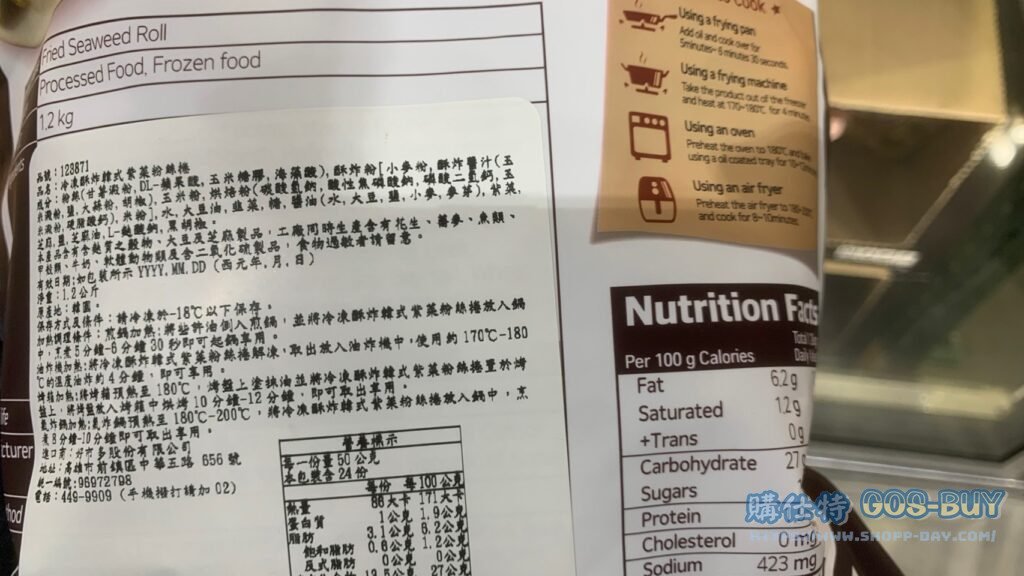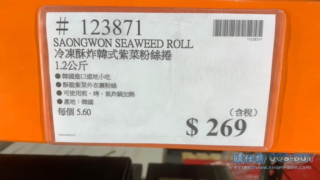 SAONGWON SEAWEED ROLL 冷凍酥炸韓式紫菜粉絲捲1.2公斤 #123871