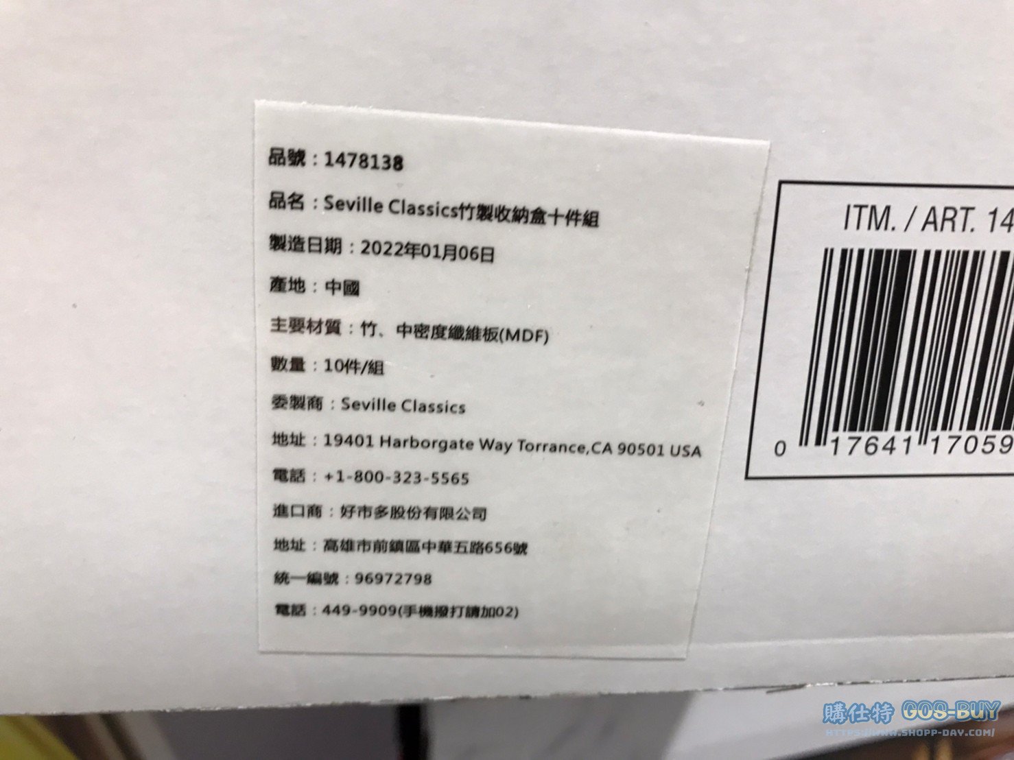 家廚房與居家生活相關 竹製收納盒 十件組 #1478138 By 網站小編 2022 年 4 月 19 日 232 產品資訊 產品資訊 產品名稱SEVILLE CLASSICS 竹製收納盒 十件組 #1478138價格725產地中國包裝規格十件組保存期限依包裝所示備註含有六種不同尺寸竹製質感佳.耐用美觀適合抽屜內分格收納依需求使用,收納各式小物適合開放陳列式收納→商品問題回報← 相關 標籤收納盒竹製 前一篇文章SUNSATIONAL DRIED APRICOTS 杏桃乾 每包1.13公斤 #2298244下一篇文章CAT CHOW DRY CAT FOOD 貓乾糧完整均衡配方 6.8公斤 #126098 網站小編https://shopp-day.com 或許你也感興趣 價格優惠資訊 2025好市多客製生日蛋糕價格表 價格優惠資訊 好市多Line社群加入方法 保健品&藥品 新甘木堅胃腸藥顆粒40包 #194496 購仕特-CosBuy 查詢排行 價格優惠資訊 2025好市多客製生日蛋糕價格表 價格優惠資訊 好市多Line社群加入方法 保健品&藥品 新甘木堅胃腸藥顆粒40包 #194496 價格優惠資訊 2025好市多會員護照-春季專案商品一覽表 價格優惠資訊 好市多美國牛肉整箱銷售價格表(2024/5/7) 裝載更多 熱門推薦 廚房與居家生活相關 普拿疼伏冒熱飲20包 #84499 廚房與居家生活相關 DOMAINE DE LA BAUME 波姆酒莊金牌FITOU紅酒 #121971 廚房與居家生活相關 SIMON LI三人座牛皮沙發#1695608 廚房與居家生活相關 TAISHO大正胃腸藥顆粒52包 #126969 廚房與居家生活相關 IDEA NUOVA 摺疊椅 #1393843 裝載更多